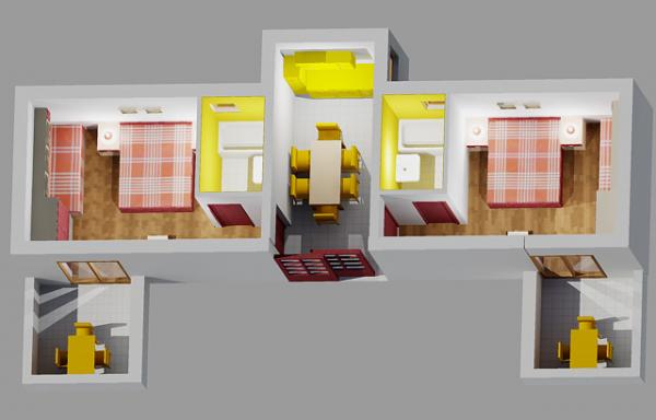 Apartma za štiri osebe, možnost dveh dodatnih ležišč (60 m2)