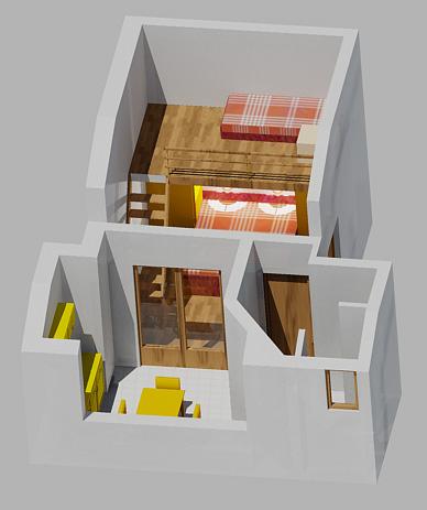 Apartma za dve osebi, možnost dveh dodatnih ležišč (50 m2)
