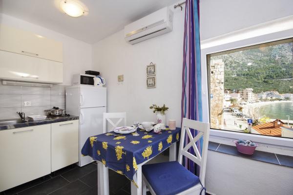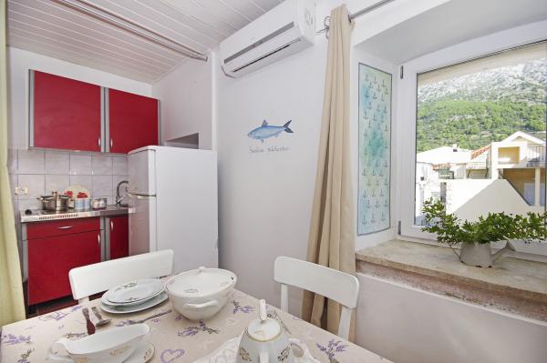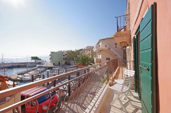 Naša hiša je del baročnega dvorca, zgrajena leta 1760. Spomeniško zaščitena. Hiša pred vami pogled na morje in otok Hvar. To smo prenovili v letu 2011. Apartmaji so dobro opremljeni in ohranil duh preteklih časov. Igrano ribiško naselje na Makarski rivieri, s cerkvijo in značilnim zvonikom na vrhu vasi in lepih peščenih plaž in čiste vode.