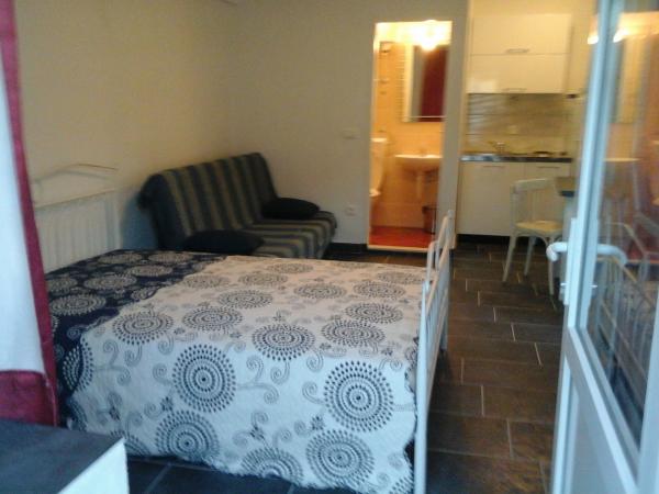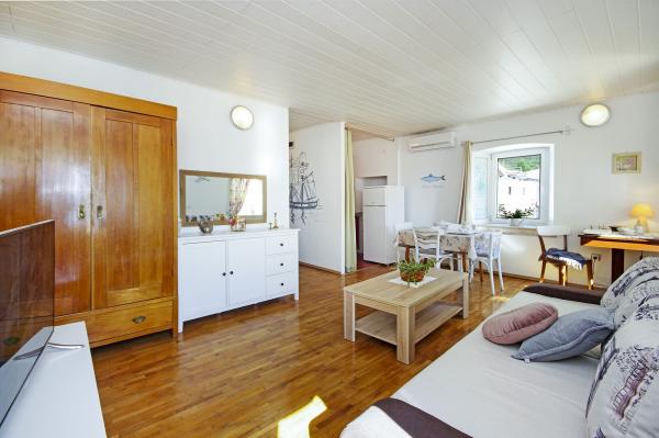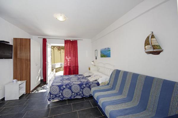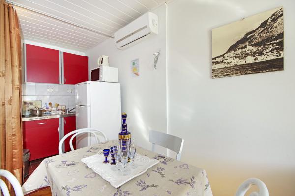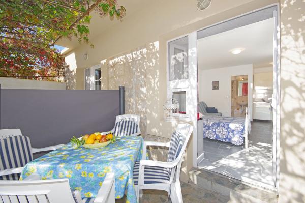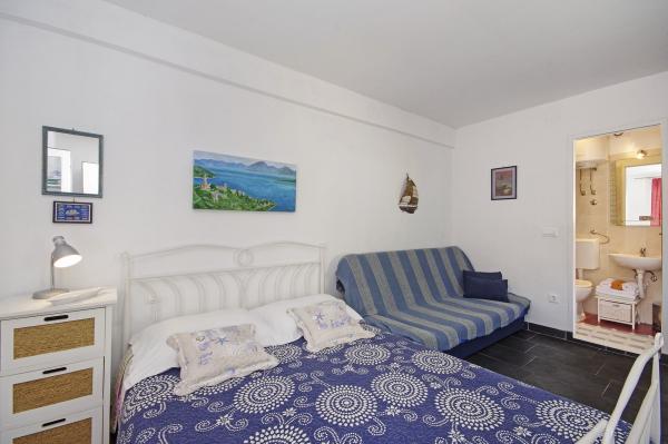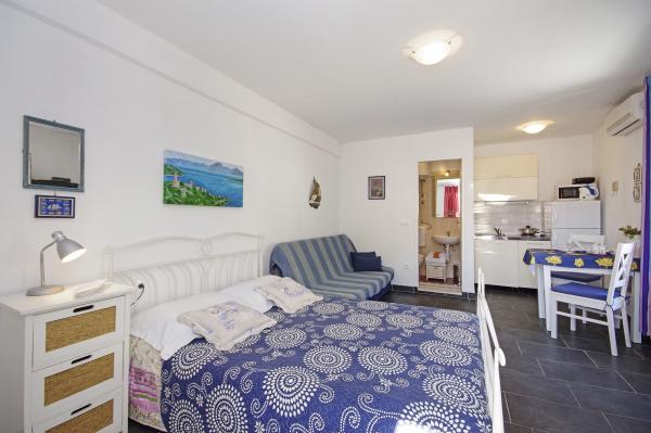 Udobno smo bivali tri osebe v studiu 1 s pogledom na morje. Je zelo blizu plaže in ima čudovito teraso s pergolo.