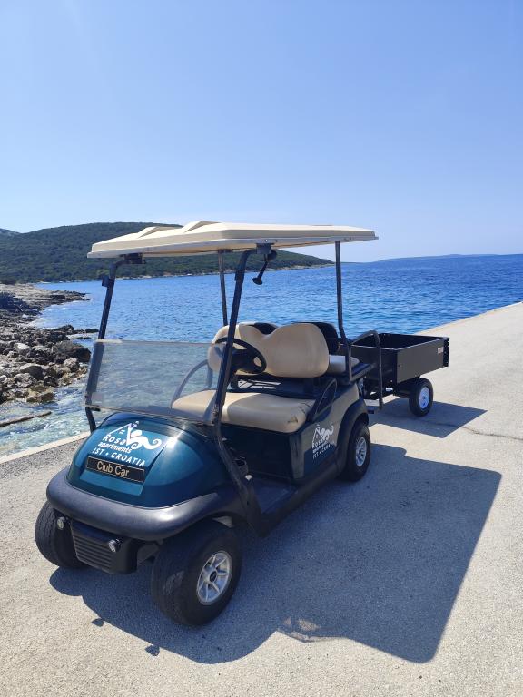 Turistična taksa nije vključena v ceno.Na Ist se lahko pripeljete s trajektom iz Zadra ali Lošinju, in katamaran iz Zadra. Če pridete s trajektom avtomobil lahko parkirate na parkirišču pristanišča, ker otok ni mogoče avtomobilski promet. Prevoz blaga s katamaranom ali s trajektom v stanovanje urediti gostitelja.