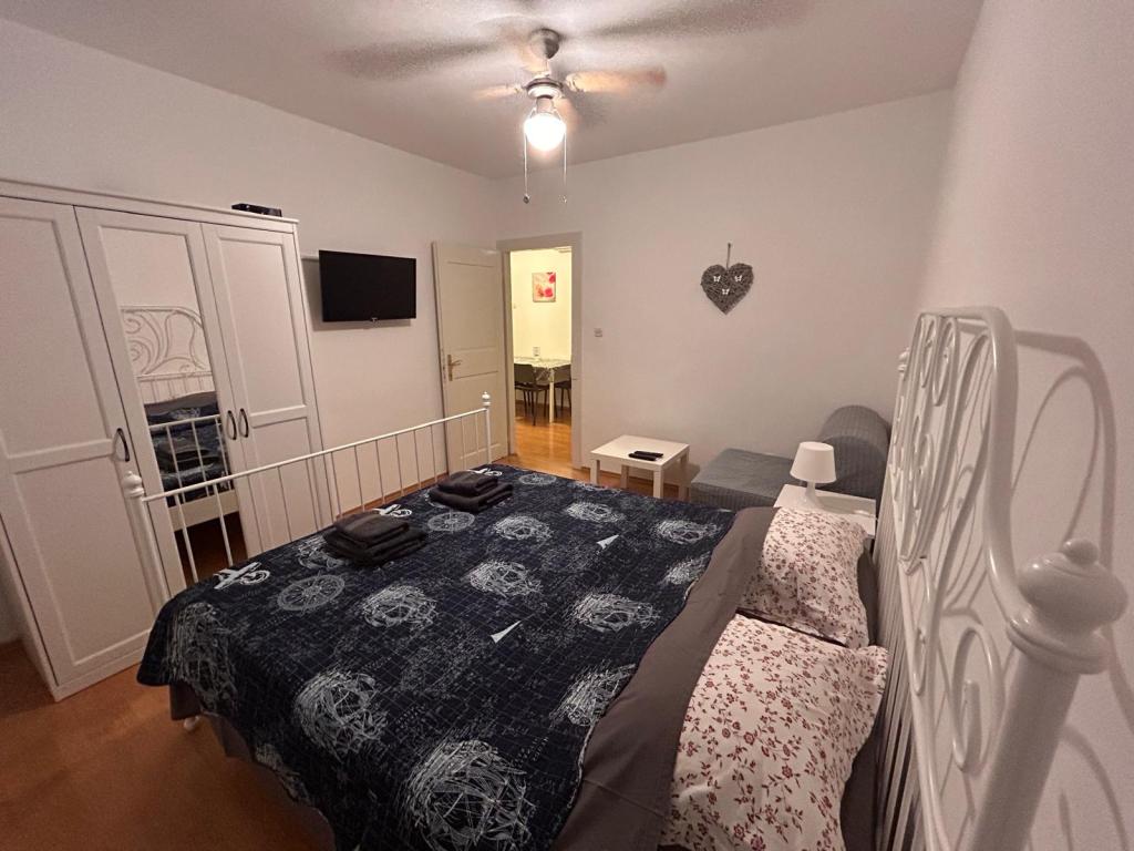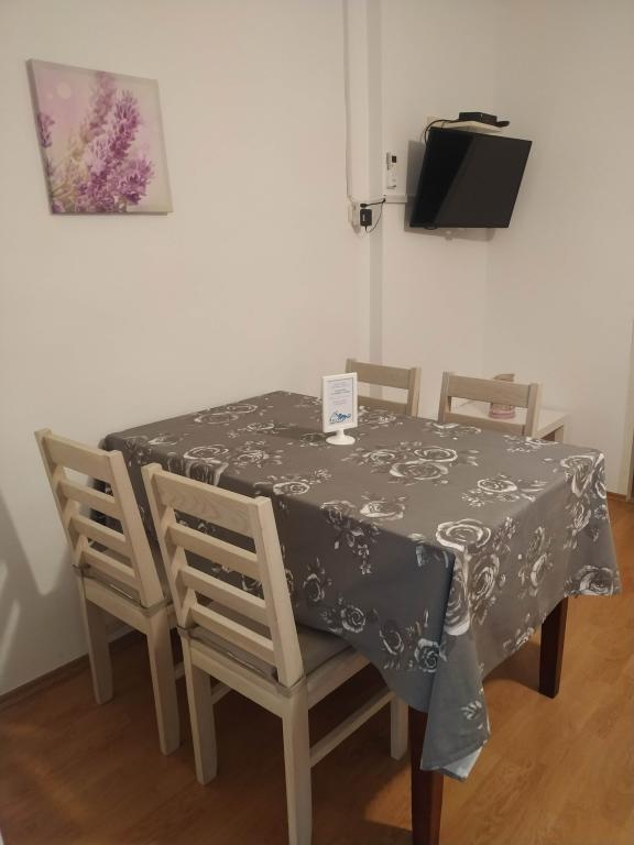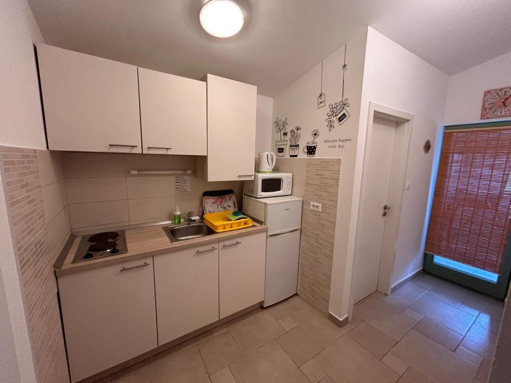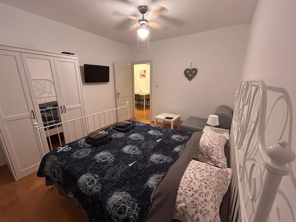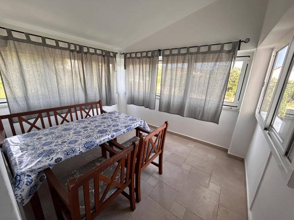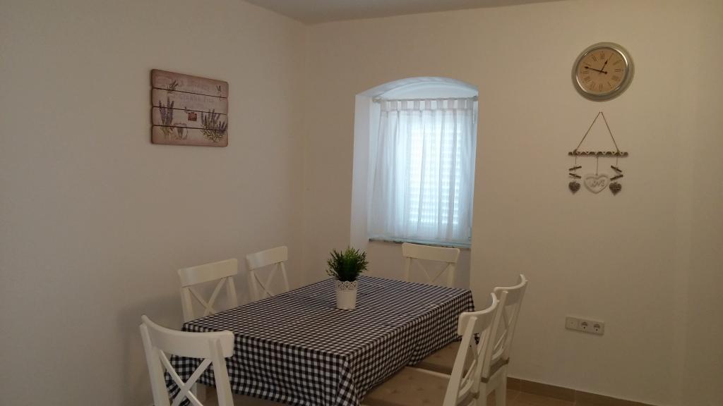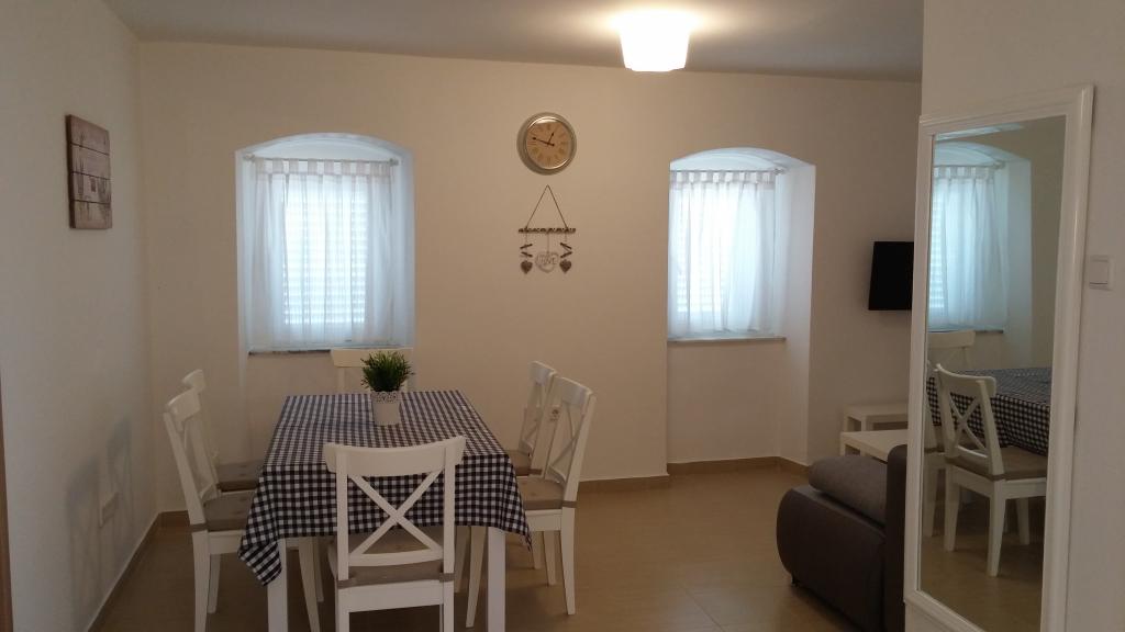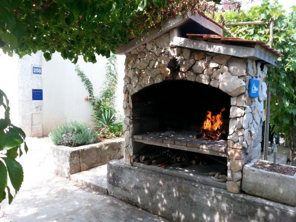 Dve novi popolnoma opremljeni apartmaji v stari kamniti hiši, ki se nahaja v mirnem osrednjem delu enaki med dvema zalivoma. Apartmaji se nahajajo 3 minute hoje do centra mesta, trgovine, plaže, igrišča, restavracije, kavarne. Gostje na dvorišču žar. V skupnem prostoru je satelitska TV.