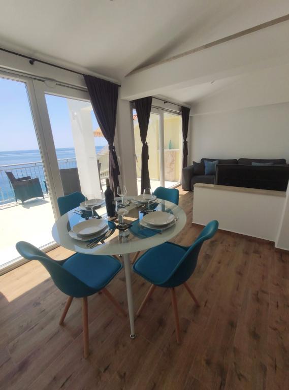 Apartmaji v centru Ivan Dolac, ki se nahaja tik ob morju. Objekt se nahaja 10m od morja in na 20 m od dveh peščenih plažah. Ob stavbi je kamnita plaža.