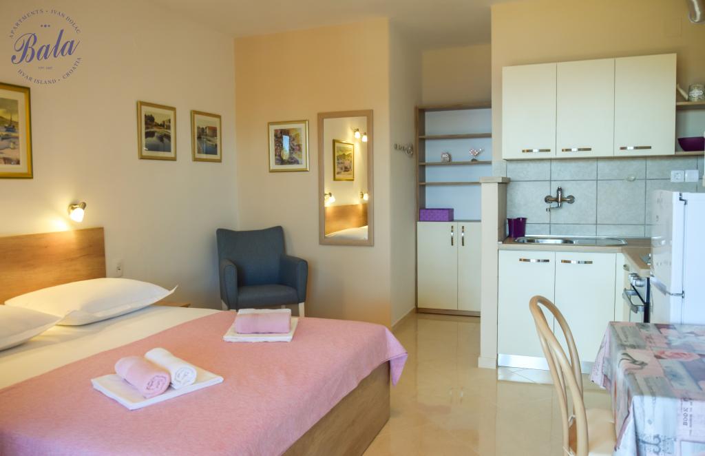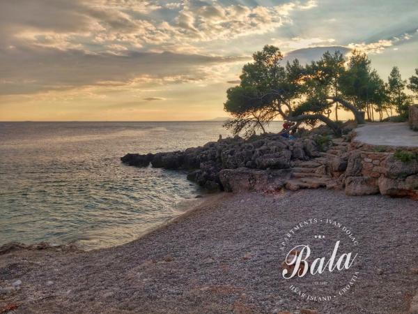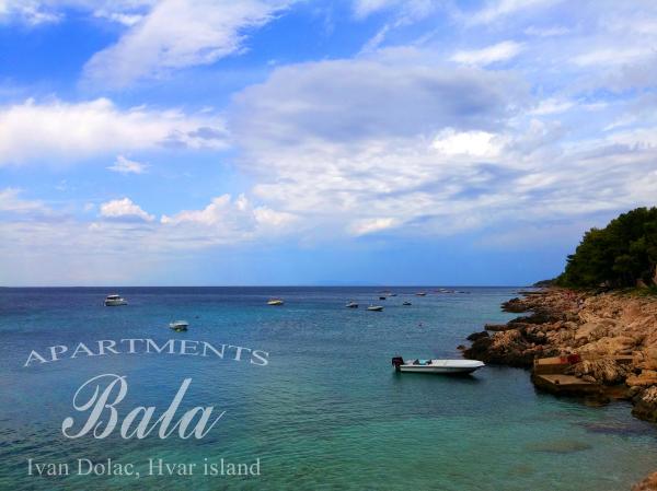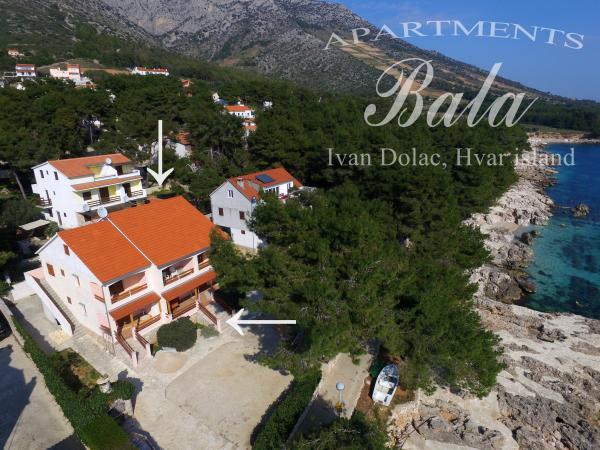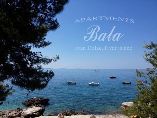 Bala Apartmaji se nahajajo na obali in v bližini plaže na eni izmed najboljših lokacij v Ivan Dolac. Lepo urejeni apartmaji in vedno na voljo gostitelji bo vaš dopust nepozaben. Vsi apartmaji so pokriti terasi z neposrednim pogledom na morje, lep vrt poln sredozemskih rastlin dopolnjuje kamin, ki je vedno na voljo. Nestrpno čaka na vas!