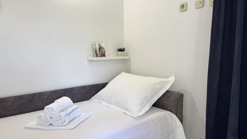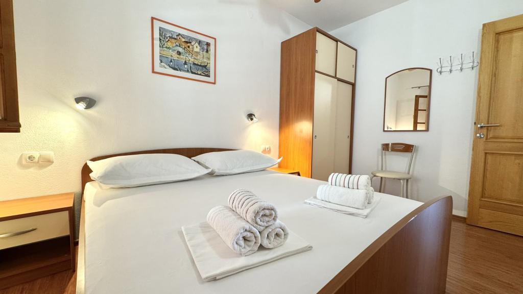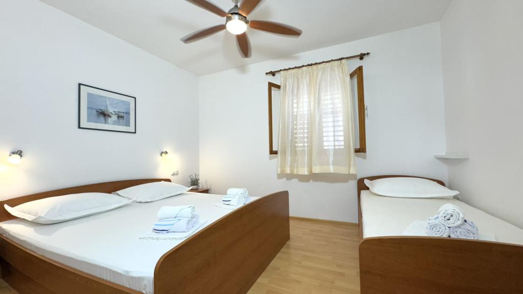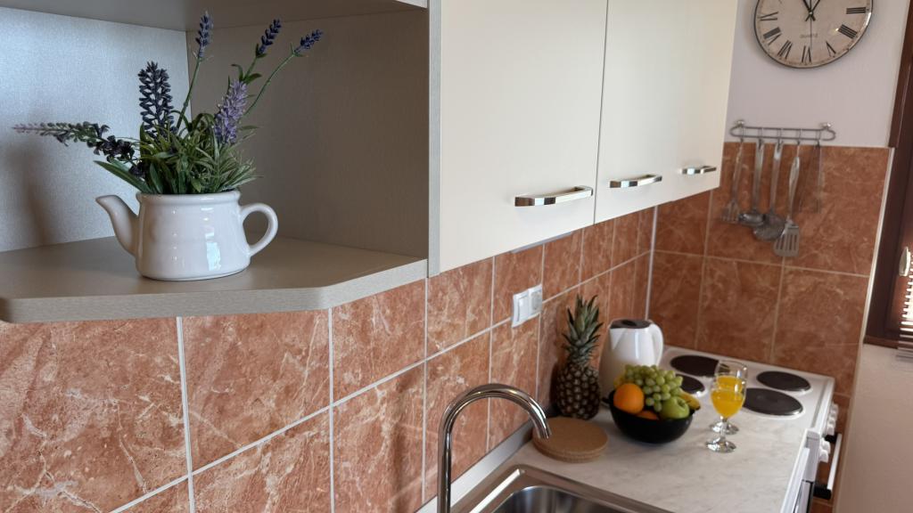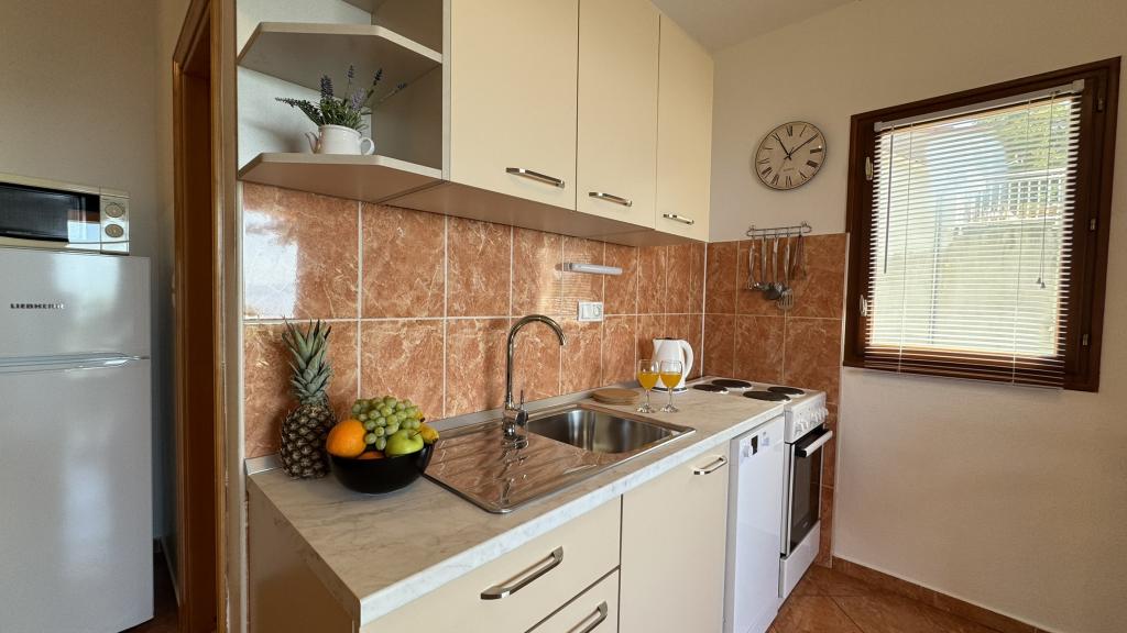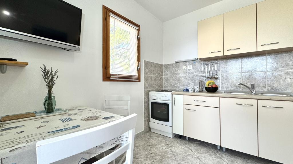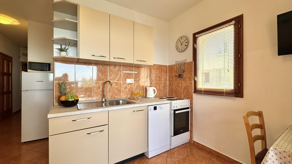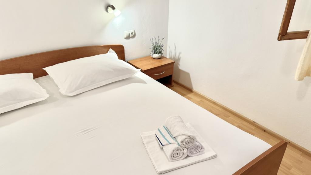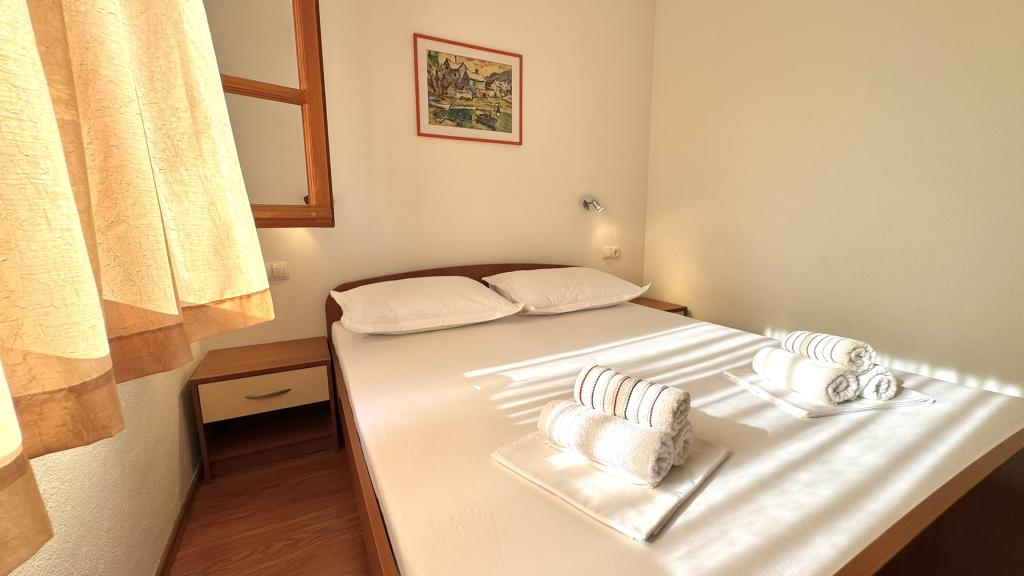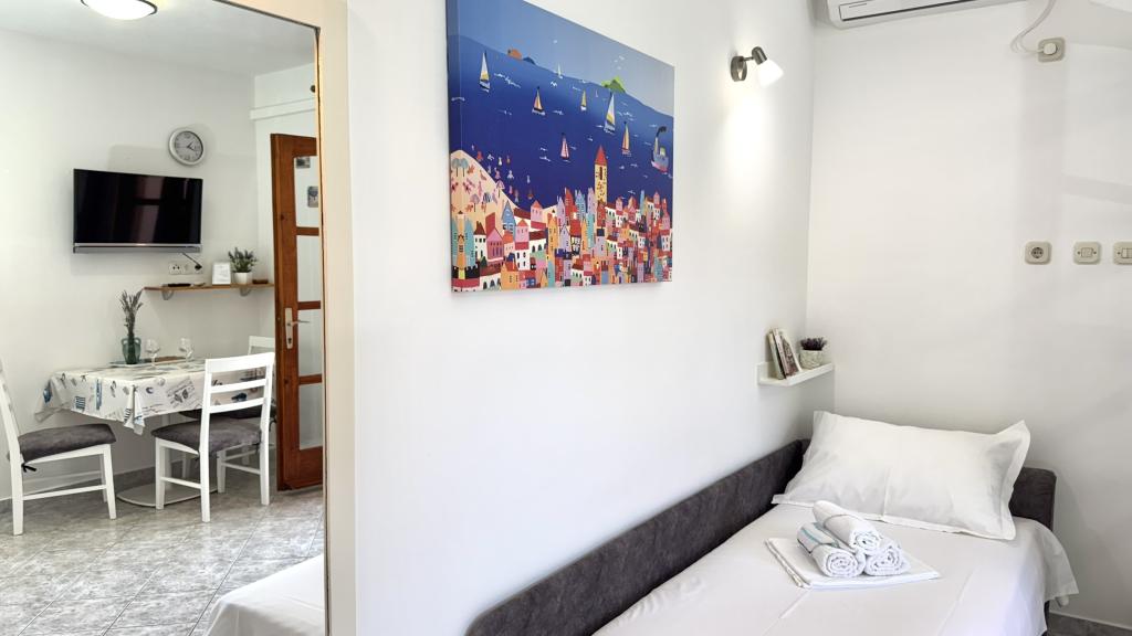 Zelo lep apartma, izjemno čist in vzdrževan, snežno bela posteljnina, lepa velika loža s pogledom na morje, točno takšna kot je na slikah. Plaža je pred apartmajem in ves dan je senca. Zelo prijazni gostitelji, vsekakor za priporočiti. Jasminka in Miro