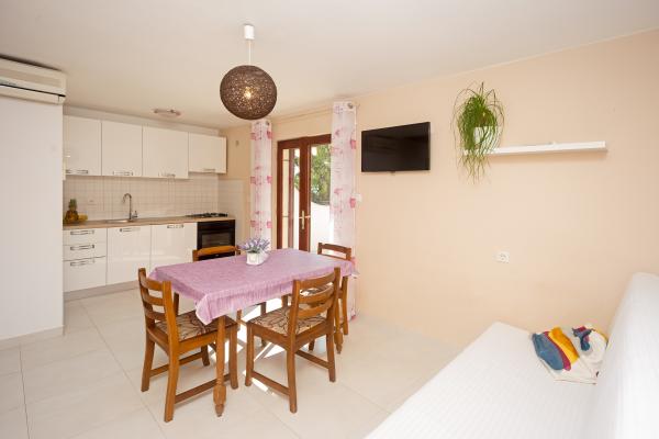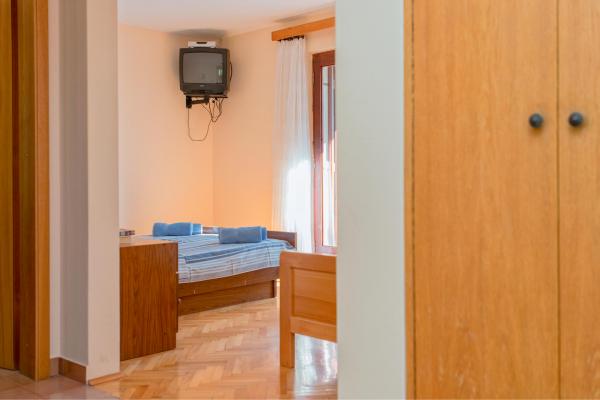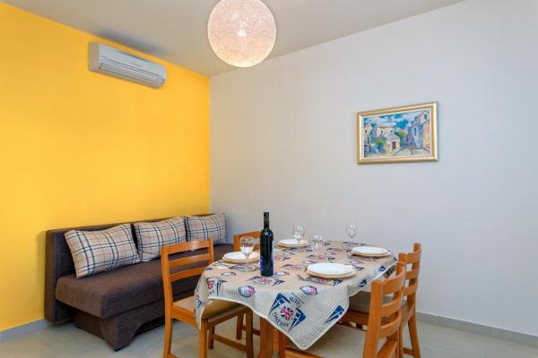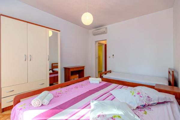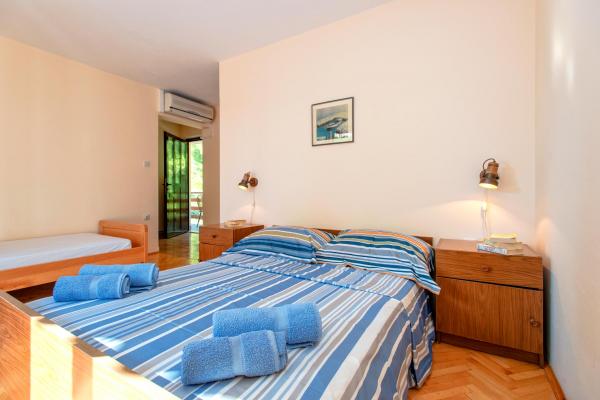 S 7 nočitvami v tem apartmaju, ki ni videti kot apartma s slik, sem doživel največjo neprijetnost v življenju. Ko sem se vračal na meji, me je policist vprašal, kje sem nastanjena in zakaj nisem prijavljena??!!!! V začudenju in šoku sem mu poskušala razložiti, kje sem nastanjena in da piše, da je v nerealno visoko ceno nastanitve, ki smo jo plačevali, všteta turistična taksa! Rekel mi je, da nisem prijavljena in da moram plačati kazen 500 HRK!!!! Kar se same namestitve tiče, je edina pozitivna stvar (mislim, da je samoumevno), da je apartma čist. Pohištvo v stanovanju je iz prejšnjega stoletja! Omare so zabite??!!! in jih ni bilo mogoče uporabiti!!! Klima deluje na pol. Takoj ko smo prispeli, smo gostitelje opozorili, da satelitski kanali ne delujejo, in nihče se ni udovolil rešiti problema v vseh 7 dneh!! Terasa je prostorna, vendar vas od apartmaja loči nizek zid, ki ne sega do konca, tako da ste tako kot gostje poleg nas popolnoma prikrajšani za intimo. Posebna zgodba je zelo neudobna, majhna in starodavna postelja, ki ob vsakem premiku tako škripa, da naju je vseh teh 7 noči prebujala z ženo. Vse skupaj se počutimo izigrane in ponižane!!!