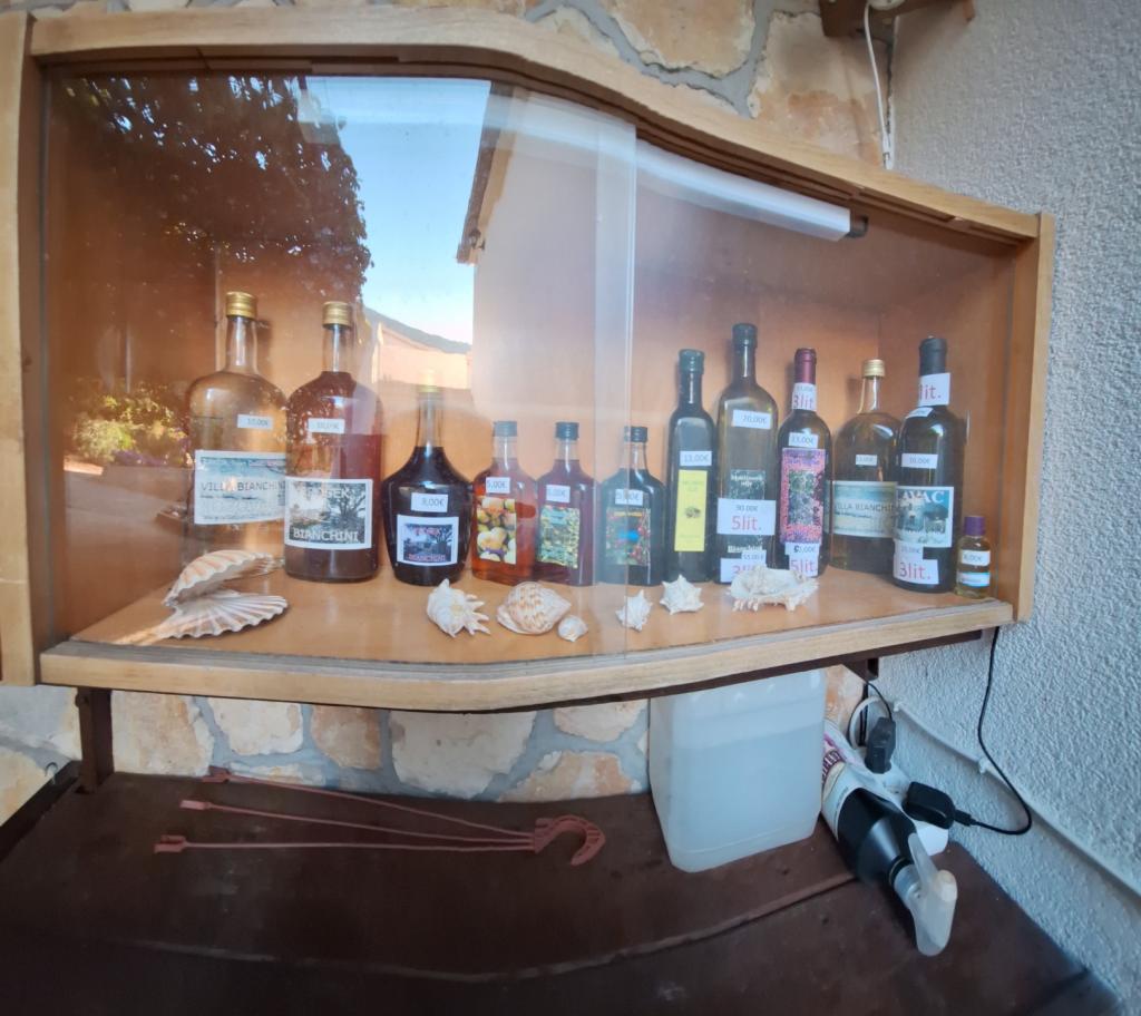 Gostom ponujam domače izdelke: vino, prosecco, žganje in olivno olje. Na parkirišču imajo na voljo žar.