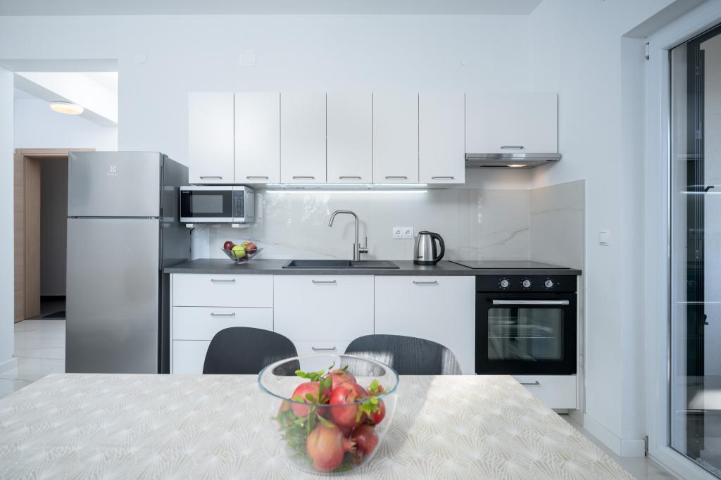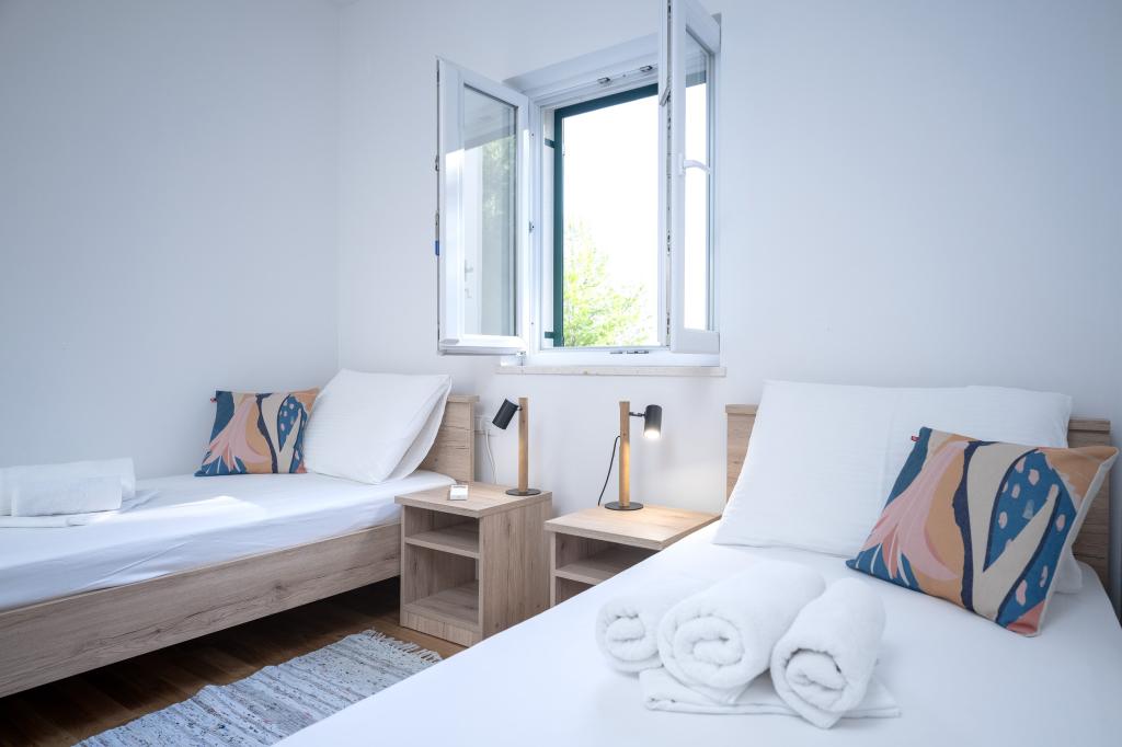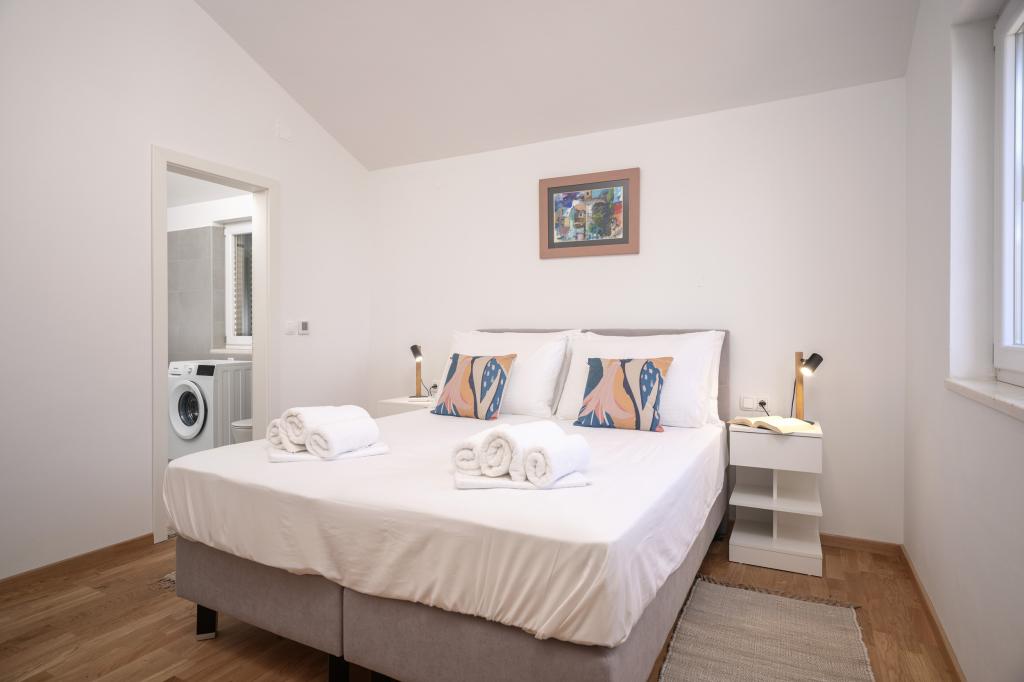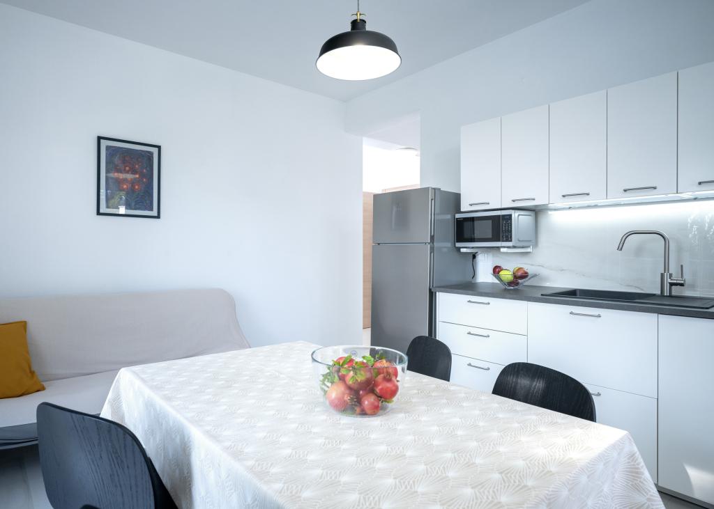 Po več kot 30 letih sem spet obiskal hrvaško obalo, z ženo in še enim parom. Bili smo v Ivan Dolcu, lepem mestecu, idealnem za miren in sproščen oddih. Zvečer smo se odpravili v Jelso, staro mestno jedro in mesto Hvar. Staro mestno jedro in mesto Hvar sta nam bila še posebej všeč, predvsem njihova arhitektura in ohranjenost starih stavb. Rad bi izpostavil gostoljubnost in prijaznost naših sosedov. In zdaj nekaj o naši namestitvi, zaradi katere pišem ta komentar. Nastanjeni smo bili v apartmaju "Matija" v 1. nadstropju, za 4 osebe, velikosti 50 kvadratnih metrov. Z eno besedo, apartma je popoln. Ne vem, kje naj začnem: stanovanje ima 3 klimatske naprave Mitsubishi (eno v vsaki spalnici in eno v dnevni sobi), udobne postelje, veliko teraso s pohištvom, veliko kopalnico (okusno in dobro narejeno), kaj pa naj rečem o kuhinji (velik hladilnik z zamrzovalnikom, štedilnik s pečico in indukcijsko ploščo, mikrovalovna pečica, aparat za kavo, grelnik vode, več vrst kozarcev, skodelic, krožnikov, ponev, loncev, začimb, kave, čaja, aluminijaste folije...), popolnost. Na hodniku imate celo pralni stroj, pralni prašek in mehčalec, neverjetno. Stanovanja so bila odprta leta 2023 in so povsem nova. Rada bi poudarila tudi, da so stanovanja narejena s stilom in okusom, pri čemer je bila velika skrb namenjena kakovosti vgrajenih komponent, pa tudi samega pohištva. Na koncu bi rada izpostavila in pohvalila našega gostitelja Stjepka (starega morskega volka), ki je bil zelo prijeten, diskreten in gostoljuben. Od Stjepka smo prejeli domače belo vino, pa tudi domače grozdje iz njegovega vinograda. Hvala Stjepku za vse. Toplo priporočam to stanovanje.