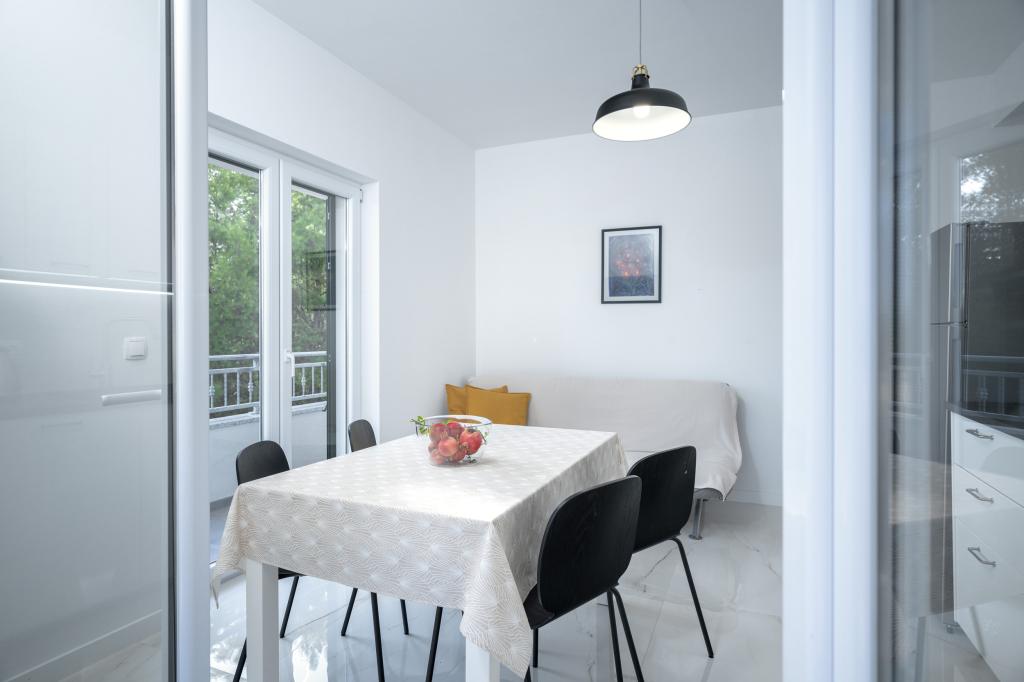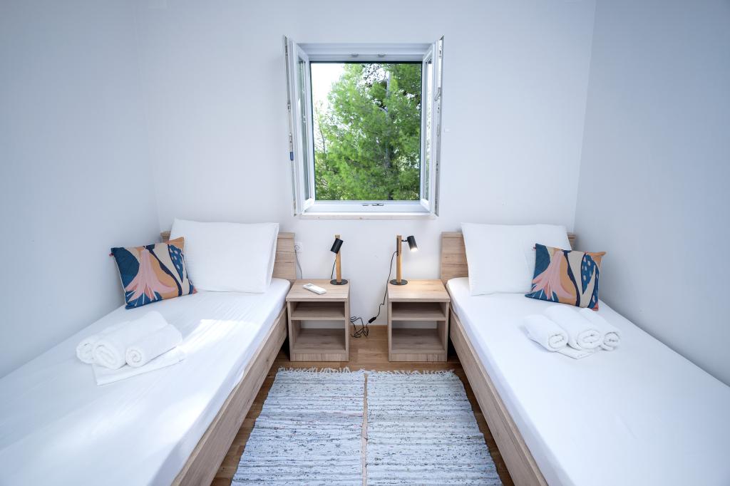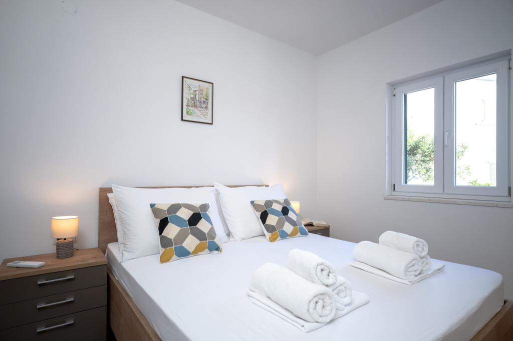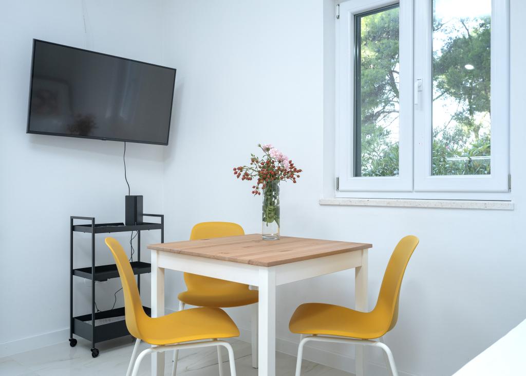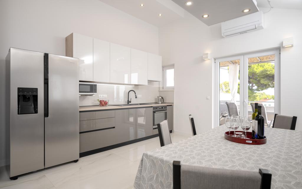 Po več kot 30 letih sem spet obiskal hrvaško obalo, z ženo in še enim parom. Bili smo v Ivan Dolcu, lepem mestecu, idealnem za miren in sproščen oddih. Zvečer smo se odpravili v Jelso, staro mestno jedro in mesto Hvar. Staro mestno jedro in mesto Hvar sta nam bila še posebej všeč, predvsem njihova arhitektura in ohranjenost starih stavb. Rad bi izpostavil gostoljubnost in prijaznost naših sosedov. In zdaj nekaj o naši namestitvi, zaradi katere pišem ta komentar. Nastanjeni smo bili v apartmaju "Matija" v 1. nadstropju, za 4 osebe, velikosti 50 kvadratnih metrov. Z eno besedo, apartma je popoln. Ne vem, kje naj začnem: stanovanje ima 3 klimatske naprave Mitsubishi (eno v vsaki spalnici in eno v dnevni sobi), udobne postelje, veliko teraso s pohištvom, veliko kopalnico (okusno in dobro narejeno), kaj pa naj rečem o kuhinji (velik hladilnik z zamrzovalnikom, štedilnik s pečico in indukcijsko ploščo, mikrovalovna pečica, aparat za kavo, grelnik vode, več vrst kozarcev, skodelic, krožnikov, ponev, loncev, začimb, kave, čaja, aluminijaste folije...), popolnost. Na hodniku imate celo pralni stroj, pralni prašek in mehčalec, neverjetno. Stanovanja so bila odprta leta 2023 in so povsem nova. Rada bi poudarila tudi, da so stanovanja narejena s stilom in okusom, pri čemer je bila velika skrb namenjena kakovosti vgrajenih komponent, pa tudi samega pohištva. Na koncu bi rada izpostavila in pohvalila našega gostitelja Stjepka (starega morskega volka), ki je bil zelo prijeten, diskreten in gostoljuben. Od Stjepka smo prejeli domače belo vino, pa tudi domače grozdje iz njegovega vinograda. Hvala Stjepku za vse. Toplo priporočam to stanovanje.