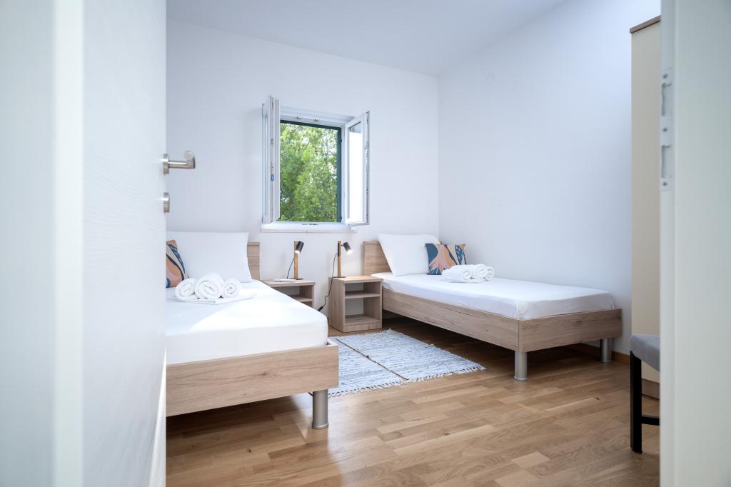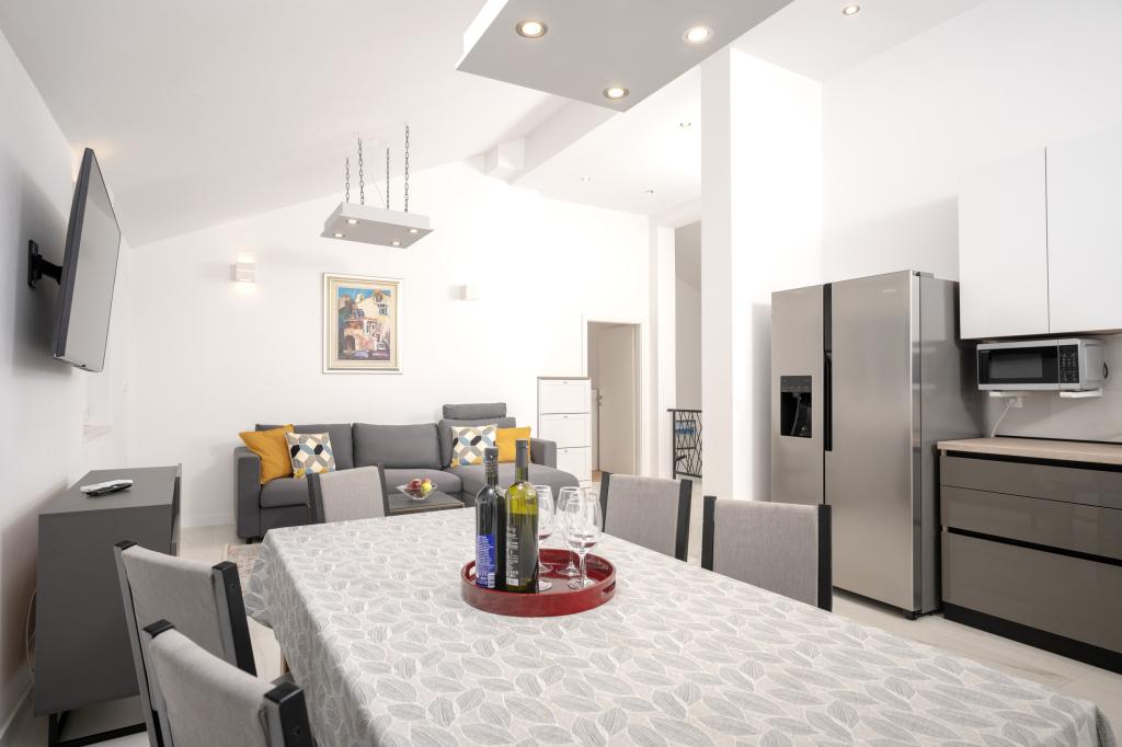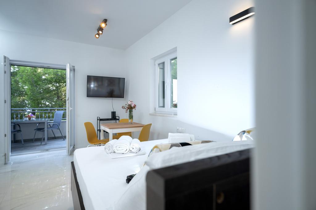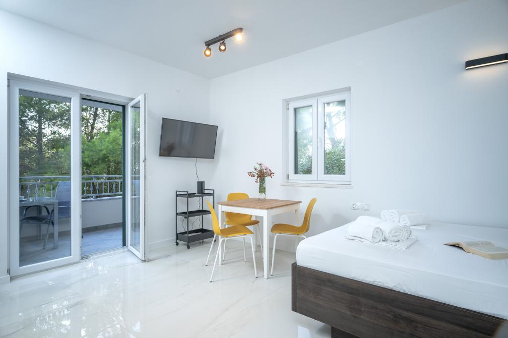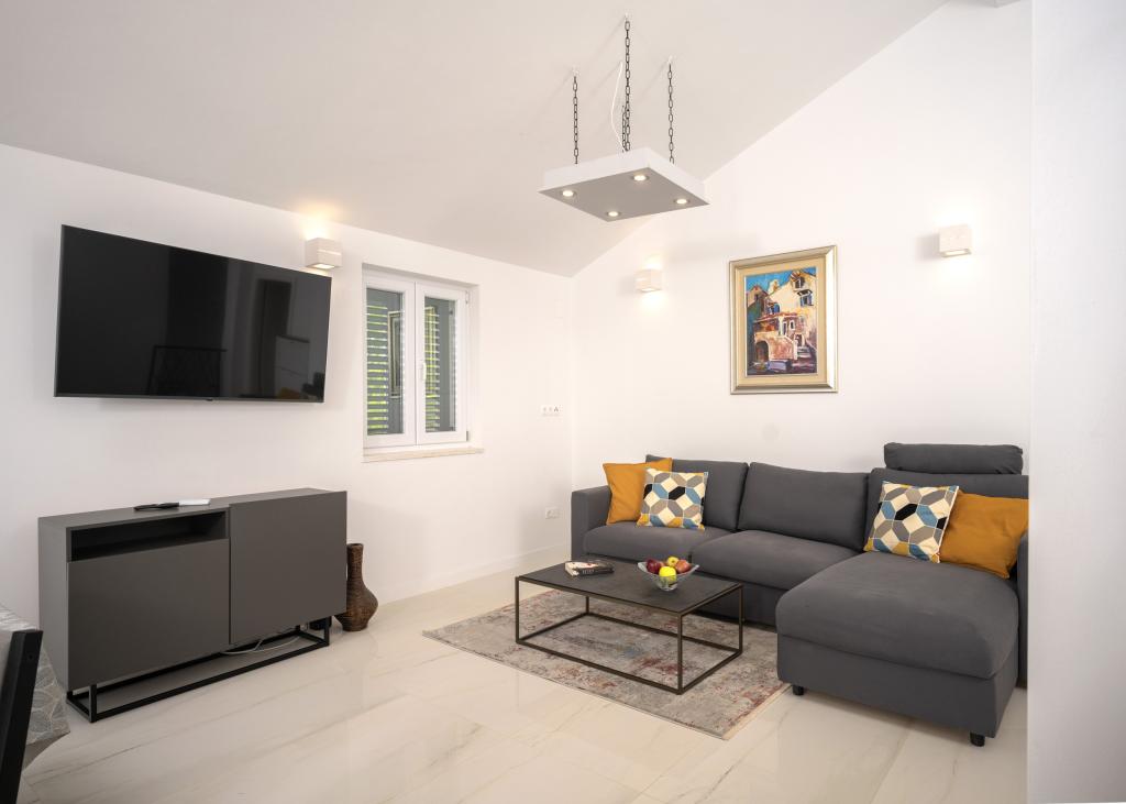 Moderno in udobno opremljeni novi apartmaji v Ivan Dolcu. Nahajajo se v mirnem delu vasi z družinskimi hišami, le nekaj minut hoje do plaže. V objektu sta dve stanovanji in ena garsonjera.