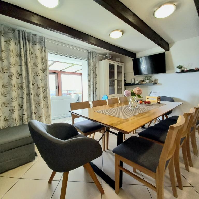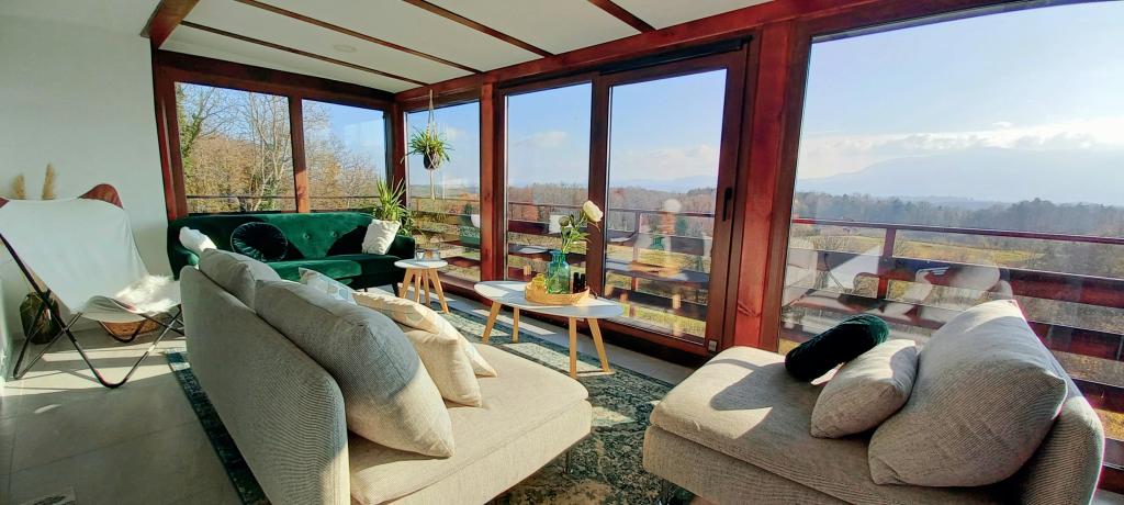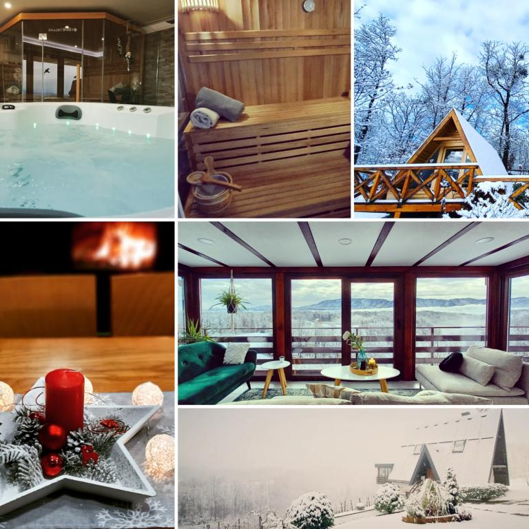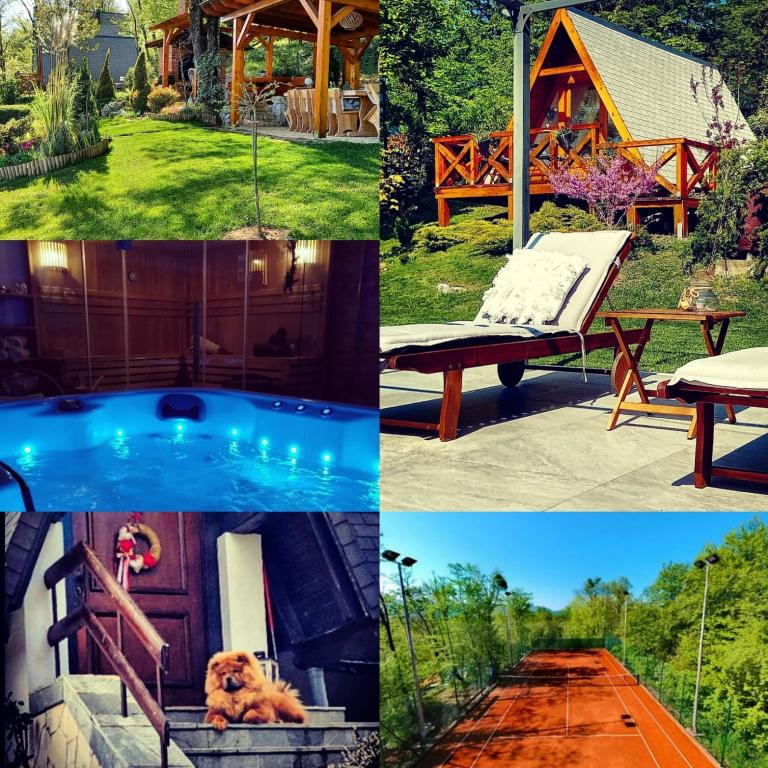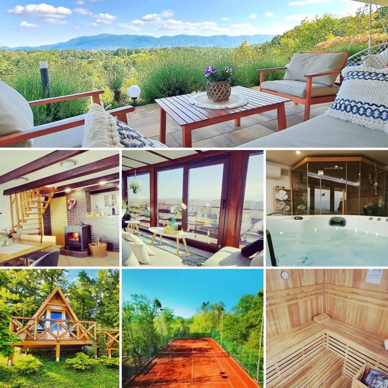 Če želite pozabiti na hiter tempo današnjega načina življenja, je to pravi kraj za vas. Le uro vožnje iz Zagreba, med čudovitimi zelenimi griči Hrvaškega Zagorja, se nahaja idealen kraj za oddih od vsakdanjika. Uživajte v SPA prostoru, jacuzziju, savni, zasebnem teniškem igrišču, čudoviti naravi v moderni hiši, urejeni z veliko truda! Ob pogledu na čudovito pokrajino boste uživali v naravi, sprehodih, tenisu, vinu in drugih vsebinah, ki vam jih ponujamo. Idealen kraj za miren ali aktiven oddih, za sprehode do bližnjih jezer, kolesarjenje, sprehode do bližnje jame \Mačkove špilje\, starih zagorskih hiš in seveda je tu biser Zagorja, grad in Trakošćansko jezero le 10 km stran. -minut vožnje stran, tu pa je tudi baročno mesto Varaždin s špancir festivalom, Lepoglava, Krapina, pa tudi številna zdravilišča (Sv. Martin, Jezerčica, Ptuj, Tuhelj...) in vse to v naši bližini.