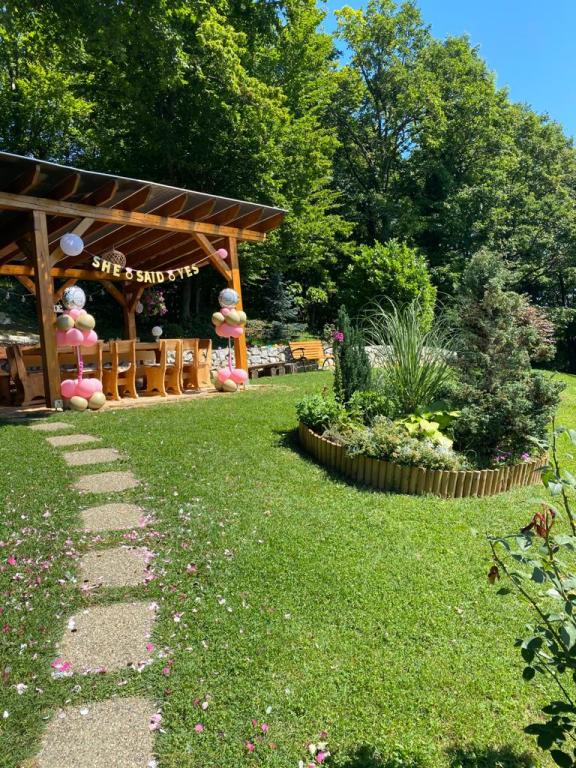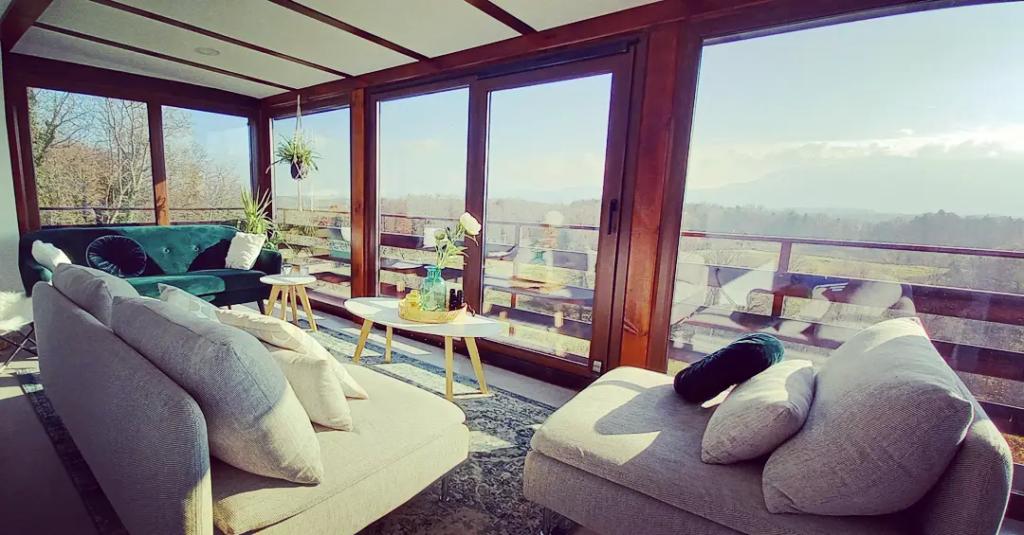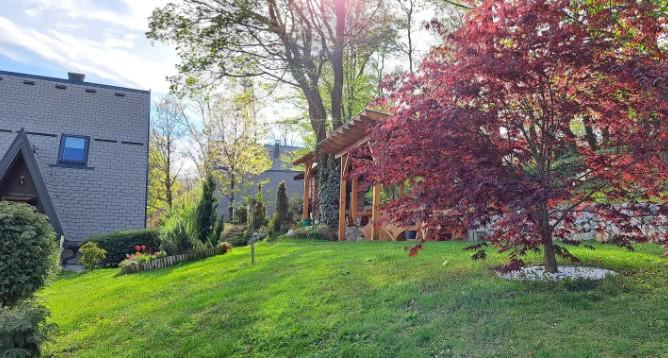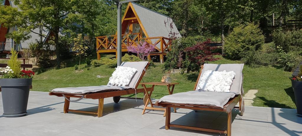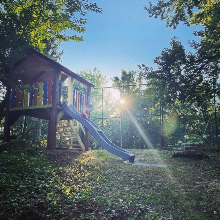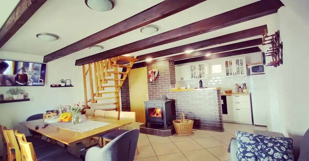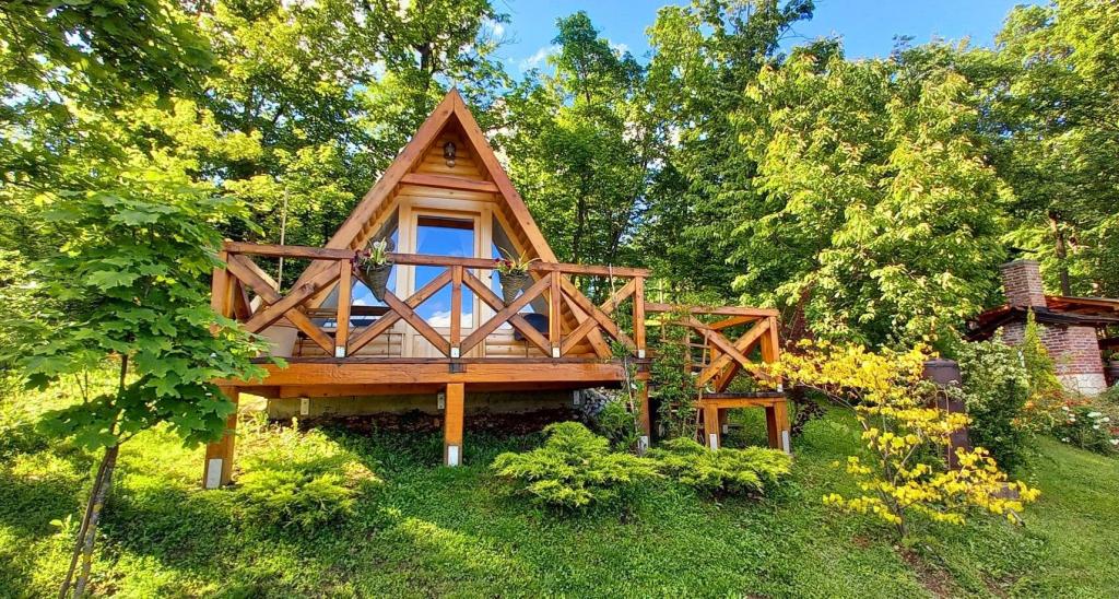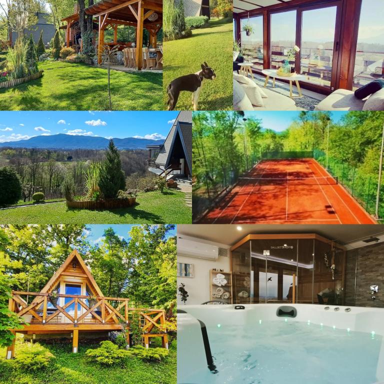 Uživajte in počivajte v počitniški hiši () in tik ob \glamping hiši, vse obdano z gozdom, na 305 metrih nadmorske višine. Dvorišče s čudovitim razgledom na planino Ivanščico vsebuje veliko pokrito teraso z velikim žarom/pečjo in lastno peščeno teniško igrišče z razsvetljavo po ceni. Hiška ima dve spalnici, dnevno sobo s kaminom na drva in mizo za 12 oseb, kopalnico in popolnoma opremljeno kuhinjo, čudovita glamping hiška pa spalnico in zasebno kopalnico! Na voljo je tudi miza za namizni tenis, kompletna oprema za žar, kolesa in še marsikaj. Psi in stalni ljubljenčki dobrodošli :)