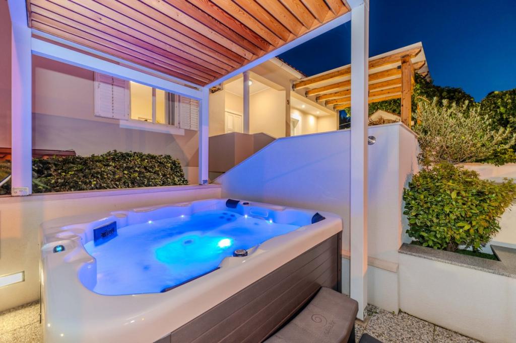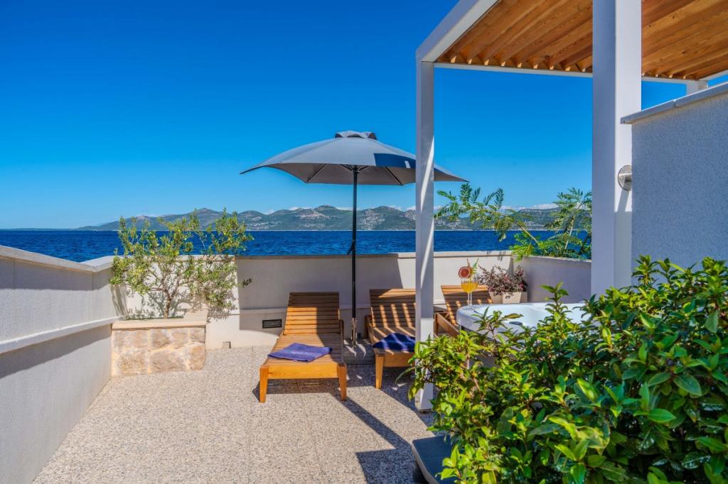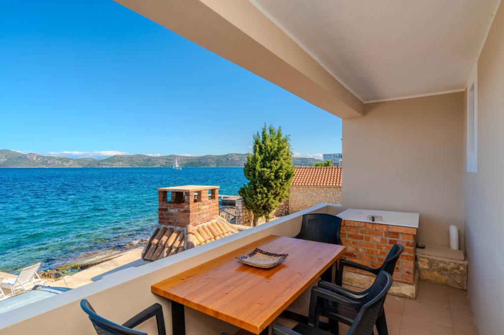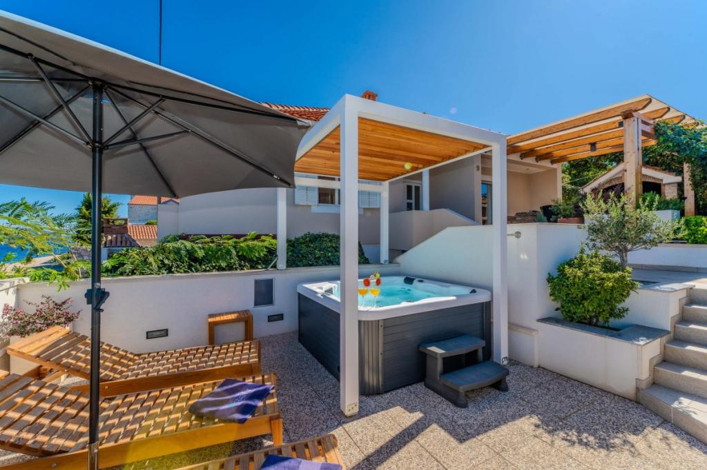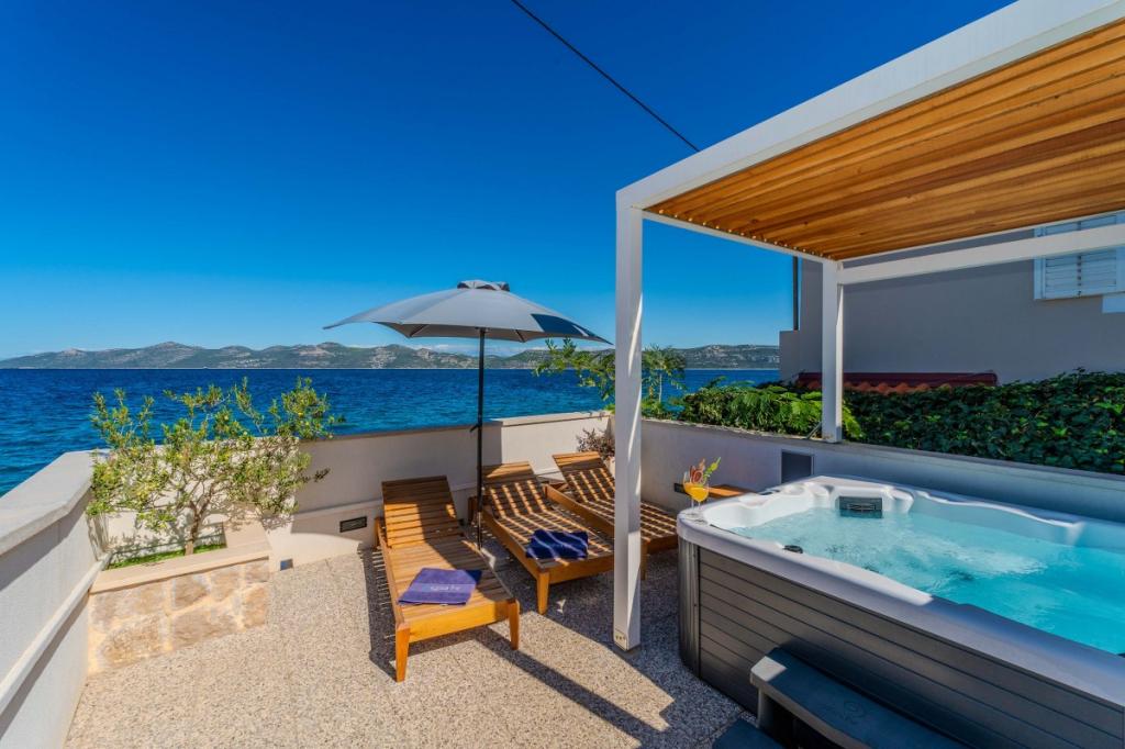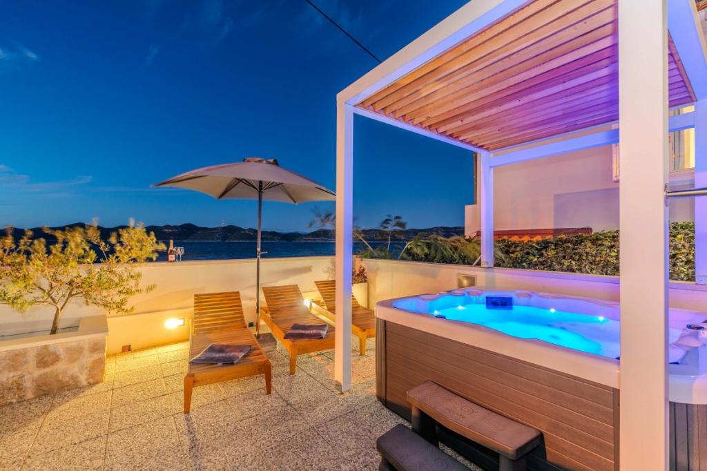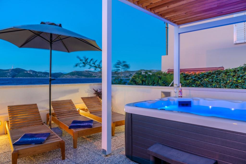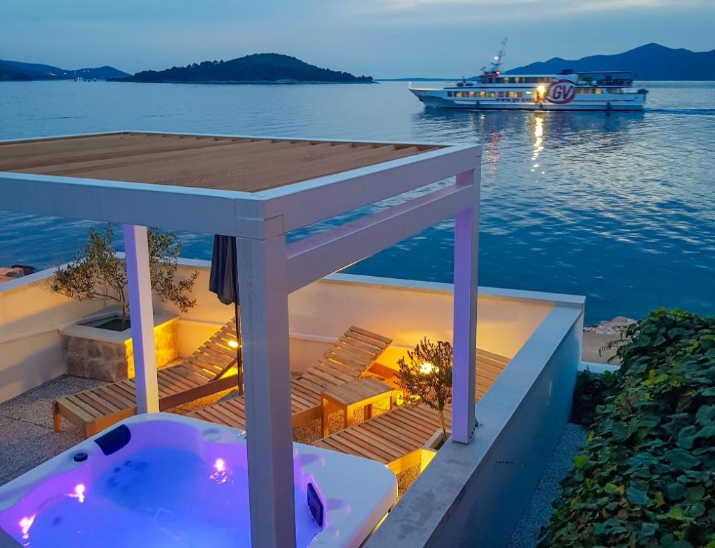 Naša dva prenovljena apartmaja z jacuzzijem (200x200 - za 5 oseb) se nahajata na idealni lokaciji (prva vrsta do morja) za vse ljubitelje miru, morske tišine, obalnega zelenja in neokrnjene narave. Poleg zasebne, naravne plaže pred objektom s senčniki in ležalniki ter stopnicami za boljši dostop do morja, imajo nekateri apartmaji balkon s pogledom na morje, nekateri pa veliko teraso z žarom. V vsakem od 2 apartmajev je popolnoma opremljena kuhinja z dnevno sobo, kopalnica in spalnica A1 z balkonom (3 1), A2 s teraso (3 1). Apartmaji imajo čar preprostosti in poletne ležernosti, ki vas bo na začetku sprostila. Od objekta vodi pot ob morju do bližnje tržnice in restavracije z robizonskim videzom in pravo dalmatinsko gurmansko hrano. Veli Iž je oddaljen le nekaj minut vožnje z avtomobilom. Tam najdete pošto, marino, restavracije in tržnico. Na celotnem otoku, tudi pred apartmajem, lahko odkrijete čare ribolova. Mir in užitek zagotovljen!