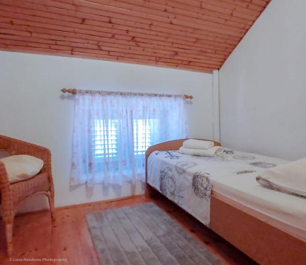 Hiša Branka je prenovljena stara kamnita hiša, prijetna in udobna za petčlansko družino. Hiša je enonadstropna, v zgornjem delu so tri udobne spalnice in WC z umivalnikom, v pritličju je kuhinja z jedilnico, dnevna soba in kopalnica. Pred vhodom v hišo je zasebno parkirišče in velika terasa - dvorišče - in kamin - žar -. Plaže na otoku Ižu so skalnate, peščene in betonske. Če ima gost čoln, lahko lastnik hiše zagotovi brezplačen privez, gost ne plača turistične takse v ceni hiše.