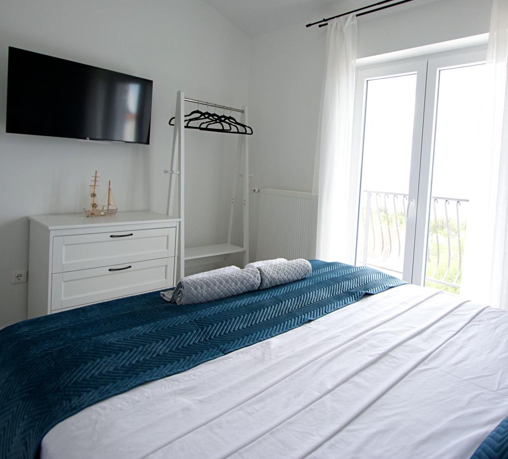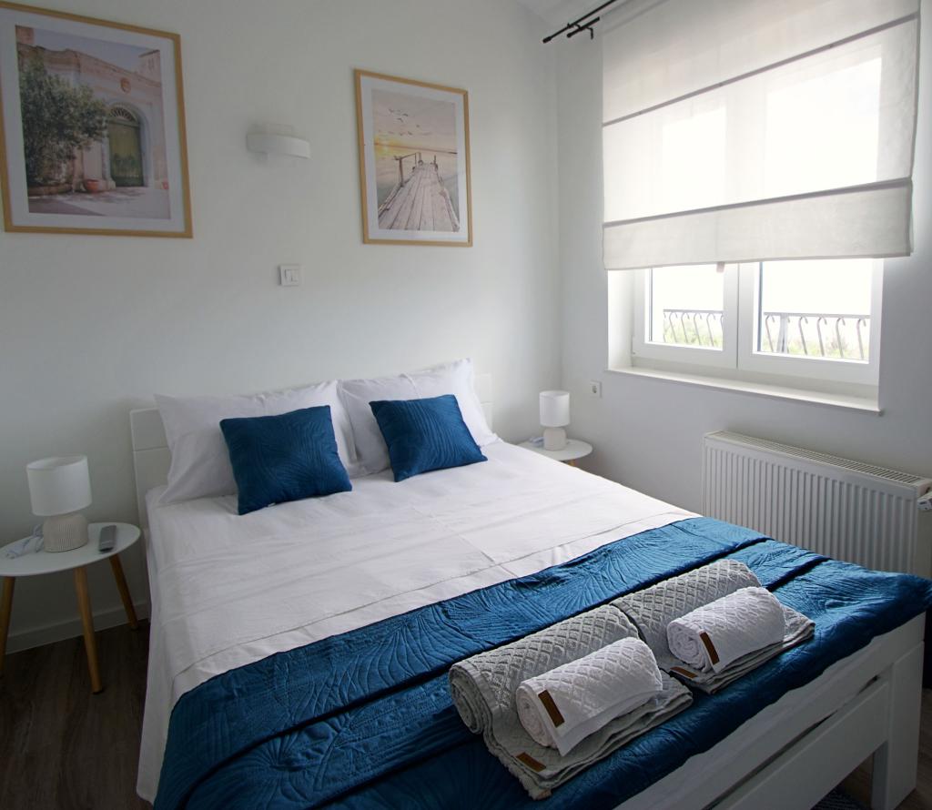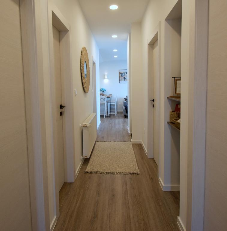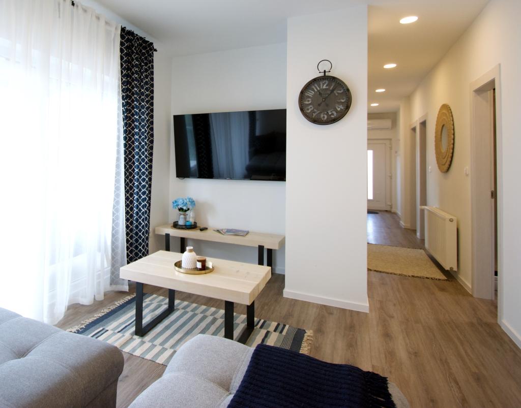 Dobrodošli v našem stanovanju Blue Horizon. Notranjost je skrbno zasnovana s sodobnimi detajli, ki jih dopolnjujejo topli, naravni elementi, ki ustvarjajo občutek harmoničnega razkošja. Prostorna dnevna soba vas vabi, da se sprostite na udobnem kavču, hkrati pa uživate v pogledu na neskončno modrino Jadranskega morja. Naša popolnoma opremljena kuhinja vam omogoča pripravo lastnih obrokov z najnovejšimi aparati in dodatki. Spalnice so oaze miru in udobja, z udobnimi posteljami in svežo posteljnino, ki zagotavljajo miren spanec po dolgem dnevu raziskovanja bližnjih plaž in znamenitosti. Naš apartma ima tudi prostoren balkon, kjer lahko uživate v jutranji kavi ali sproščeni večerni pijači ob sončnem zahodu. Prva plaža je oddaljena 300 m, restavracija 100 m, trgovina pa 400 m. Uživajte v vsakem trenutku preživetem v našem apartmaju ob morju, kjer se združijo udobje, razkošje in lepota narave, da vam zagotovijo nepozaben dopust.