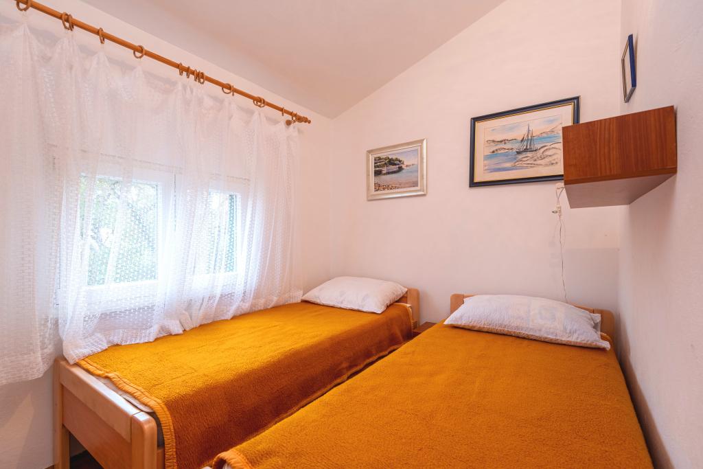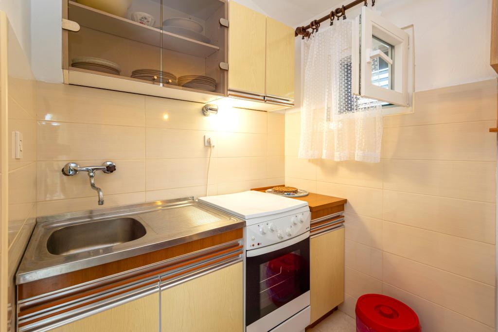 Funkcionalno opremljeno počitniško stanovanje v Jadriji pri Šibeniku. Stanovanje je veliko 35m2 + terasa 17m2. Sestavljen je iz dveh spalnic, za skupno 4 osebe, kuhinje (plinski štedilnik, hladilnik), kopalnice in prostorne terase. Apartma ima TV, klimo, mikrovalovno pečico, aparat za kavo, brezplačno WI-FI 5G omrežje in vse, kar potrebujete za prijetno bivanje. Nahaja se v prvem nadstropju počitniške hiše. V spodnjem nadstropju lahko uporabljate zunanji tuš in žar. Sam apartma je v mirnem okolju, le 100 m od plaže Guština uvala in 200 m od druge plaže in kavarne. Trgovina in restavracija se nahajata 80 metrov od apartmaja. Brezplačno parkirišče je 150m od apartmaja. Prihod gostov od 15.00 ure, odhod gostov do 10.00 ure. Ker se Jadrija nahaja med Vodicami in Šibenikom, je lokacija idealna za enodnevne izlete v bližnja mesta, ki ponujajo številne možnosti za nepozabne počitnice, ter obisk Narodnega parka Krka, ki je od Jadrije oddaljen 24 km. Vodice so oddaljene 7 km, Šibenik pa 13 km.
