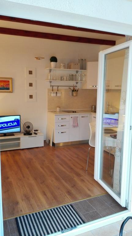 Apartma je na novo urejena in se nahaja v prvem nadstropju stanovanje v Riva. Nahaja se na mestu Šibenik Jadrija, ki je 10 kilometrov oddaljeno od Šibenika in usmerjanje od 5 km. Ga lahko Jadrije biti, razen po cesti pripeljete z ladjico jadranje skozi kanal sv Ante 20 minut. V bližini je restavracija, pizzerija in trgovina. Terasa ponuja panoramski pogled na vrt, v katerem se nahaja kamniti žar in tuš. Minimalne 7 nočitev v obdobju od 7. januar - 9. januar Zagotovljen parkirni prostor v dvorišču spredaj.
