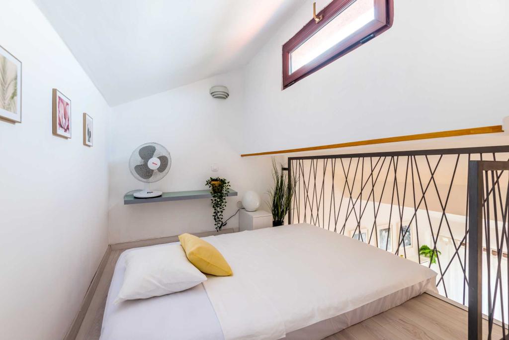Hiša se nahaja v Jadriji, v mirnem vikend naselju v bližini Šibenika, obdanem s čistim morjem in s pogledom na dva čudovita otoka Zlarin in Prvić, idealen kraj za sproščujoče družinske počitnice stran od množice. Poleti je Jadrija s Šibenikom povezana z ladjo preko kanala sv. Antuna, kar vam omogoča prijeten in edinstven izlet v mesto, ne da bi vas skrbelo parkiranje. Hiša se nahaja le 300 m od morja in urejene plaže, ki je oddaljena le 5 minut hoje po ravni in prijetnih ravne poti. Na voljo so trije popolnoma opremljeni apartmaji, vsak s klimatsko napravo, brezžičnim internetom in satelitsko televizijo. Dva apartmaja v prvem nadstropju imata balkon z delnim pogledom na morje, kar je idealno za jutranjo kavo ali večerno sprostitev. Apartma v pritličju (opomba: višina stropa 2 metra) ima dostop do prostornega mediteranskega vrta z žarom in zunanjim tušem, zaradi česar je idealen za bivanje na prostem in poletna druženja. Parkiranje za vse tri apartmaje je zagotovljeno pred hišo. . mirna lokacija . blizu plaže . zasebno parkirišče . idealno za družine
