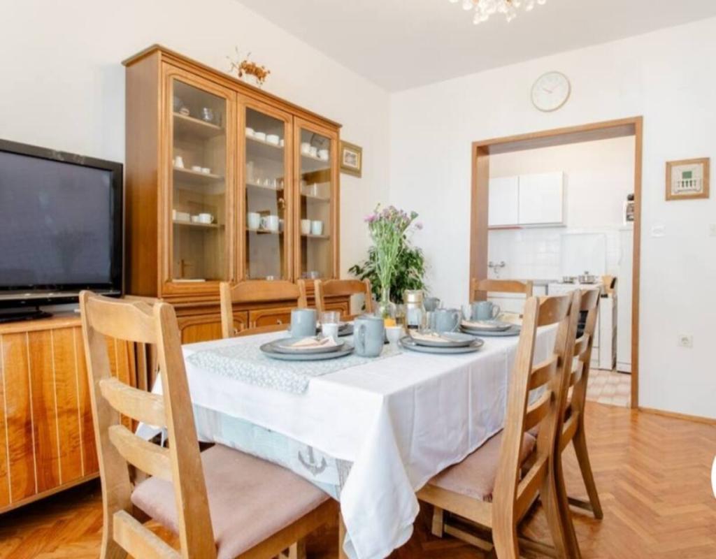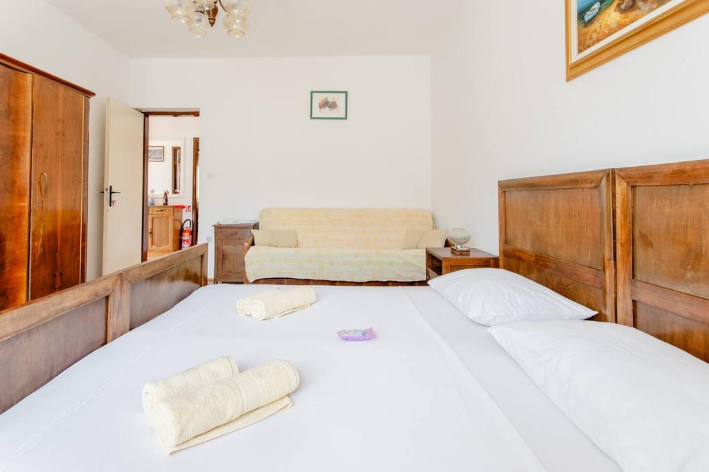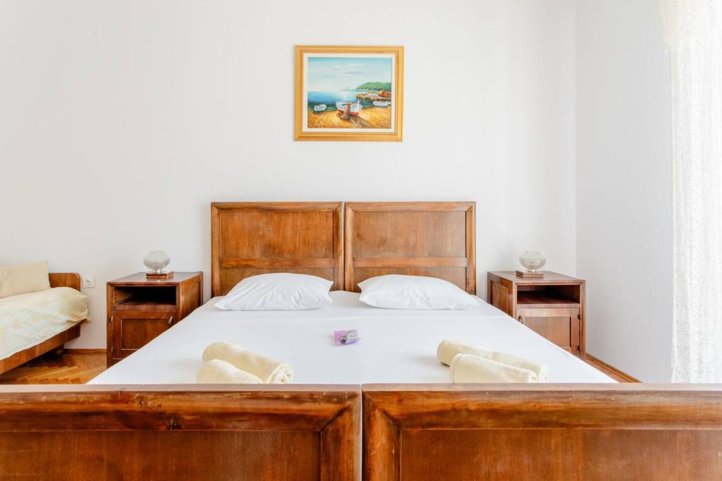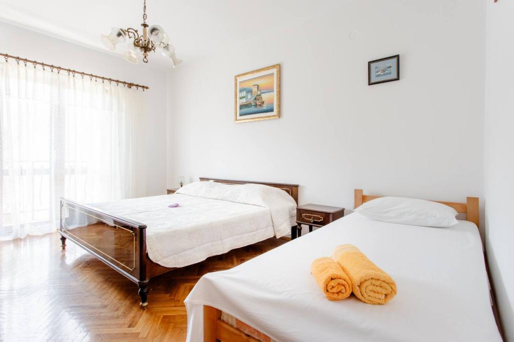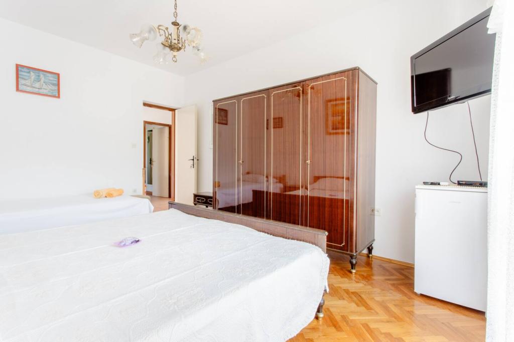 Družinska hiša se nahaja v bližini morja, v središču Jelse, v mirnem in tihem okolju, ki je idealno za družinsko nastanitev in počitnice. V radiju 100 metrov je vse, kar je pomembno za goste: mestna plaža, slaščičarne, restavracije, trgovine, pošta, banka, lekarna in park s posebnimi vsebinami za otroke. V radiju 200 m je pomol za hitro ladjo s kopnim in avtobusna postaja, ki povezuje Jelso s celotnim otokom Hvar. Kot gostitelj sem vedno na voljo svojim gostom. Oddajajo se tri ločene namestitve: 1. celotno nadstropje družinske hiše za 10 oseb (3 sobe, kuhinja in 2 kopalnici) 2. dve ločeni troposteljni sobi z uporabo skupne kopalnice 3. apartma za štiri osebe (1 soba, kopalnica in kuhinja) Cene končnega čiščenja so za App 6+4 30 €, za App 2+2 20 € in za sobo 15 €.