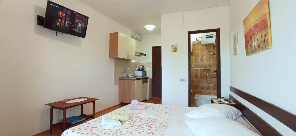 Popolna lokacija z veliko majhnih plaž v hoje. 2 sobe so res lepo opremljene - hotelski standard. Vsaka soba ima veliko SAT TV, kopalnico, balkon in vsako sobo ima svojo kuhinjo !!!! Majhni vrtovi okoli hiše, borovci, žar. Nedaleč od hiše najdete bare in restavracije. 5 minut od hiše lahko izposodite kolo in čoln. Obstajajo tudi izleti z ladjo na bližnje otoke. Odlično!