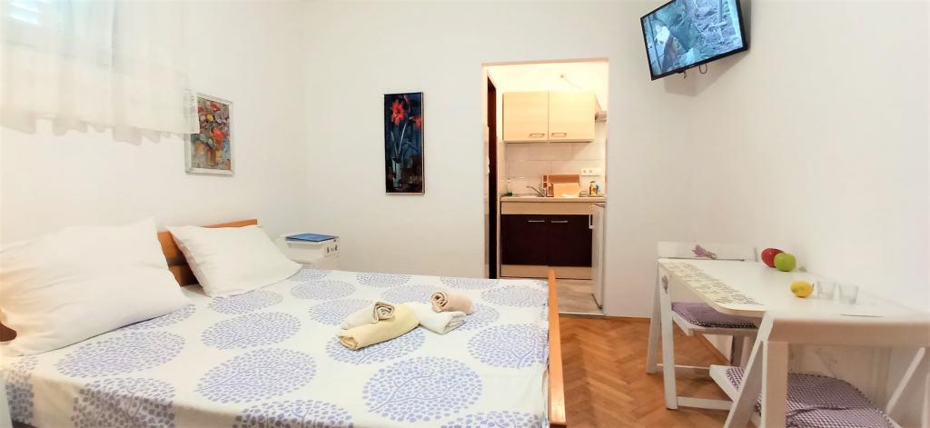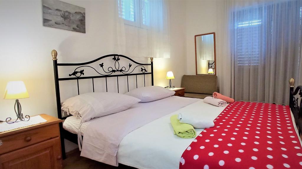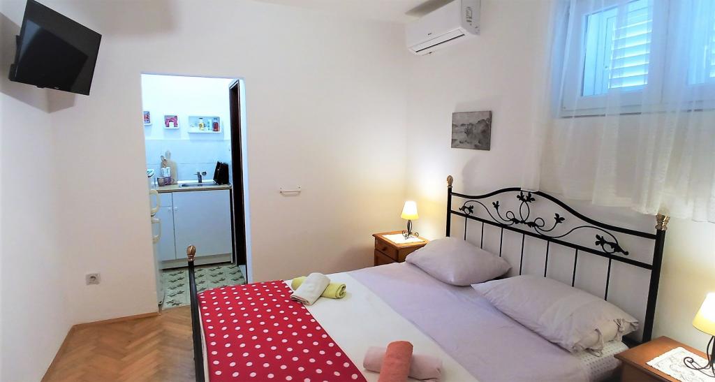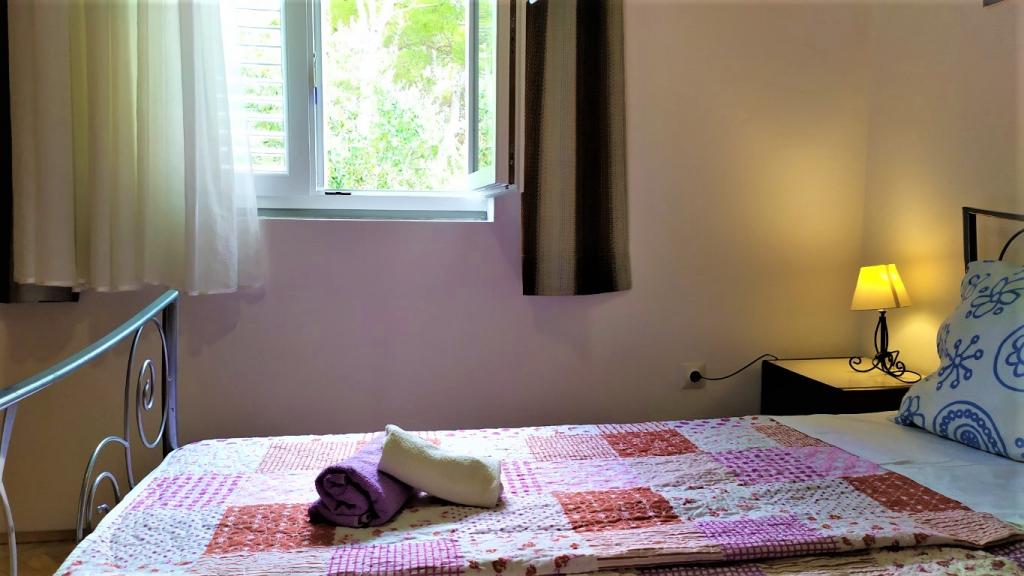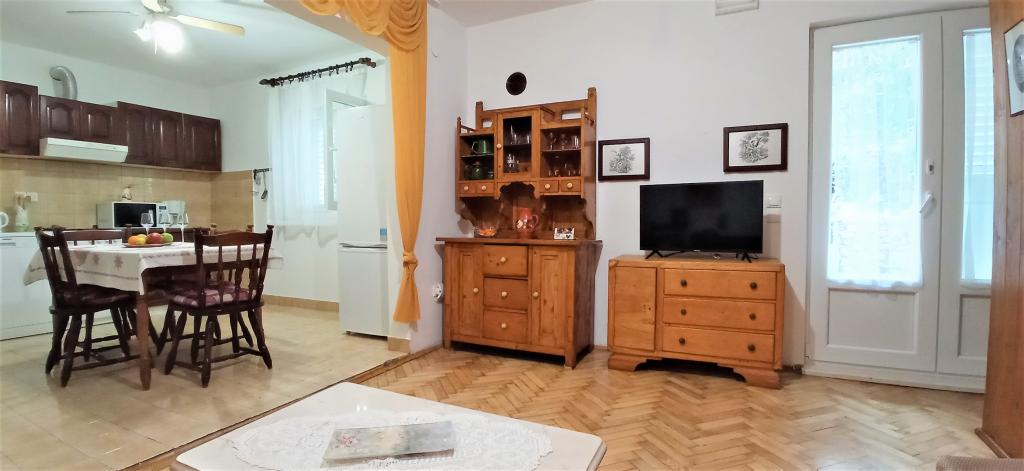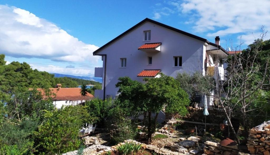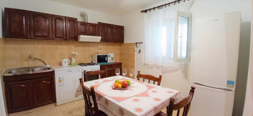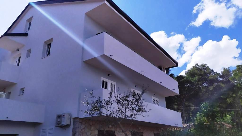 Hiša se nahaja v mirnem predelu Jelse zraven borovega gozda in morja. 70 metrov od morja. Apartmaji se nahajajo med Jelsa in Vrboska, otok Hvar, na mirni lokaciji z več prodnatimi plažami in eno peščeno plažo v bližini V naši hiši nudimo: 3 studio apartmaji. Vsak apartma ima spalnico, kopalnico in kuhinjo ter mizo in stole pred apartmajem ob vrtu. En studio apartma ima veliko teraso. 2 sobi. Vsak ima svojo, WC, kuhinjo in balkon z mizo in stoli in pogledom na morje. Prav tako je možno najeti tako sobe kot stanovanje za skupnim vhodom, ki je ločen od drugih stanovanj Apartma AP4 ima dve spalnici, veliko kuhinjo z jedilnico in dnevno sobo. Obstajajo tudi dve kopalnici. Vsaka soba ima posteljo za dve osebi. Ena od sob ima tudi dodatno ležišče in balkon z mizo in stoli za 2 osebi. Balkon ima pogled na morje. Dnevna soba ima klimo, LCD TV in kavč, ki ga je mogoče razširiti v posteljo za 2 osebi. Pred apartmajem, med šipek drevesa, oljke in borovci je terasa z mizo in stoli.