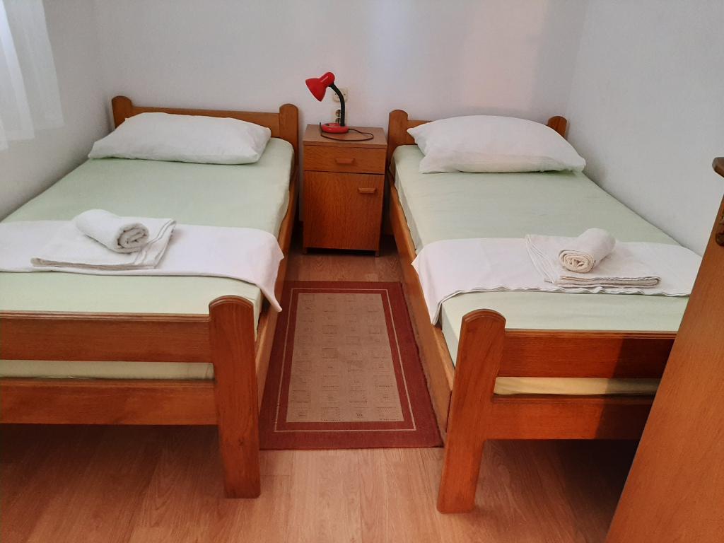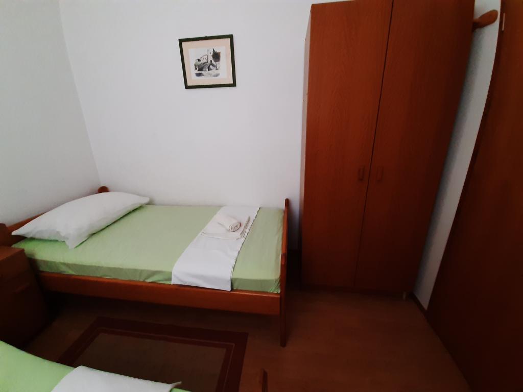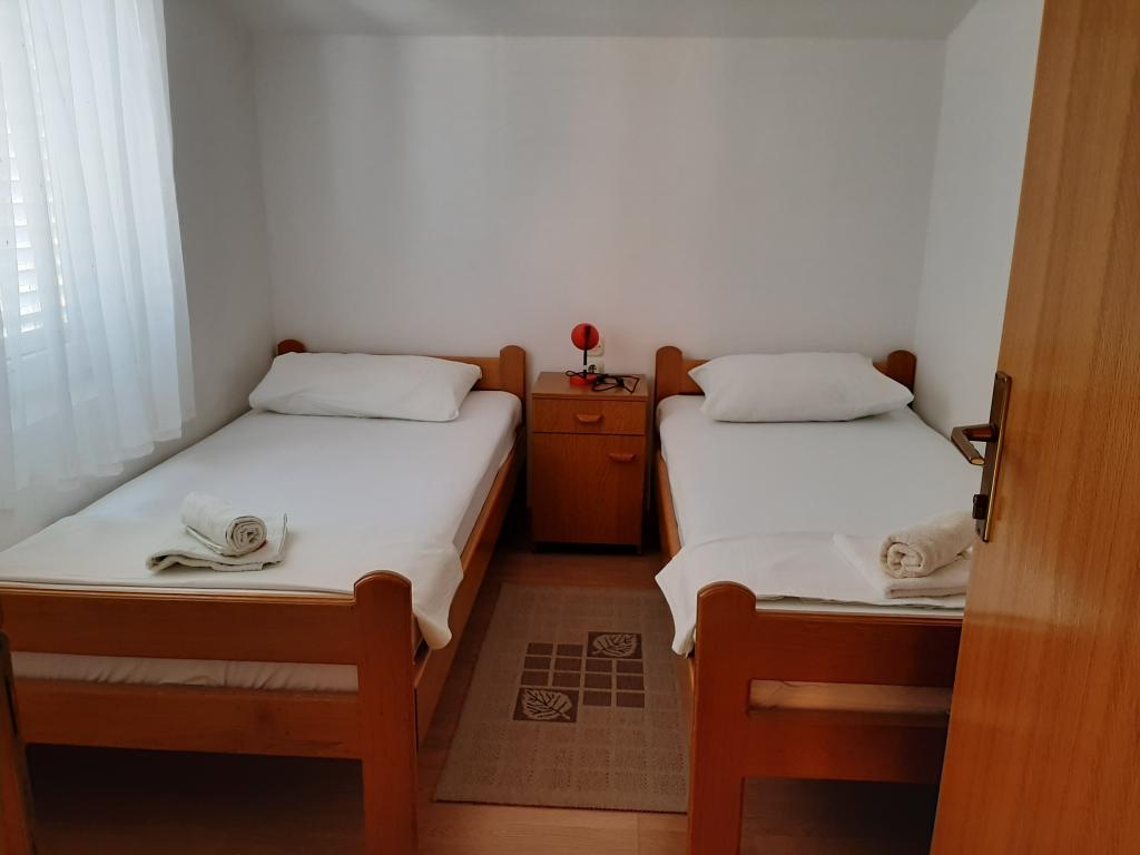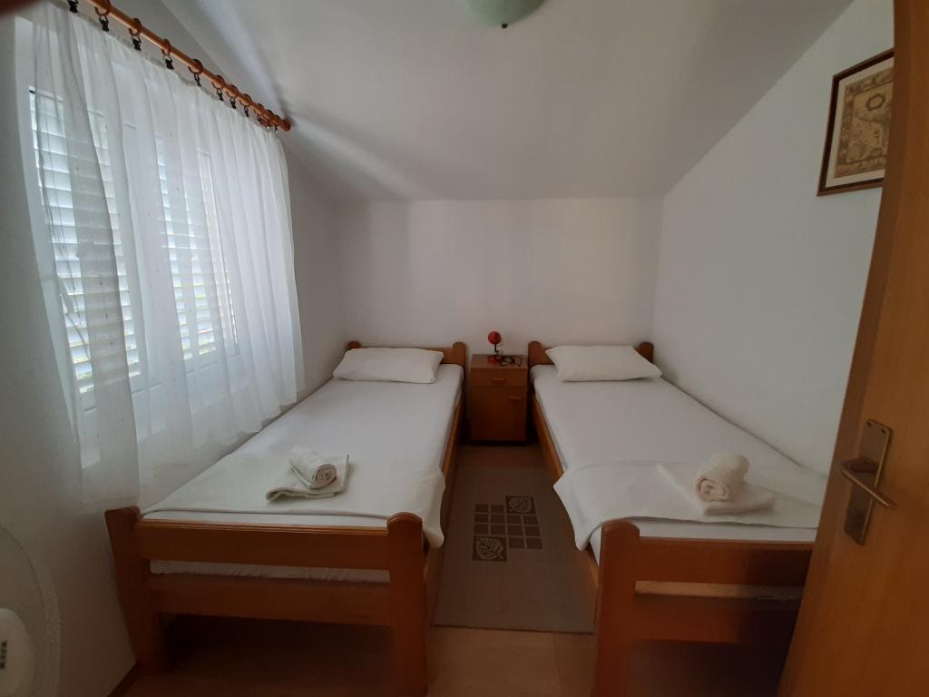 Apartmaji Cvrčak so sestavljeni iz dveh studio apartmajev v prvem in drugem nadstropju. Oba imata enako razporeditev prostorov in sta sestavljena iz dveh spalnic, od katerih ima ena zakonsko posteljo, kuhinje, povezane z dnevno sobo in kopalnice. V eno sobo se vstopa iz pritličja. dnevno sobo, v drugi pa s stopnišča. Oba dnevna prostora se odpirata na prostorne terase s pogledom na morje, mesto in pristanišče. Za hišo je na voljo terasa z žarom. V bližini apartmaja je plaža z opremo za otroke, ki je oddaljena 3 minute hoje, trgovina je oddaljena 10 minut hoje, medtem ko sta ACI Marina Jezera in šola jadranja oddaljeni 1 minuto hoje. V bližini je več prodnatih in betoniranih plaž, na otoku pa je tudi znana peščena plaža Slanica. Lepa promenada, ki povezuje Jezera in Tisno, je oddaljena 10 minut hoje, priporočljiva za hojo ali kolesarjenje. V bližini apartmaja sta nacionalna parka Kornati in Krka. Priporočilo namestitve za udeležence šole jadranja. Apartmaji so v celoti opremljeni, parkirišče pa je zagotovljeno pred objektom.