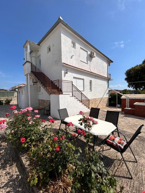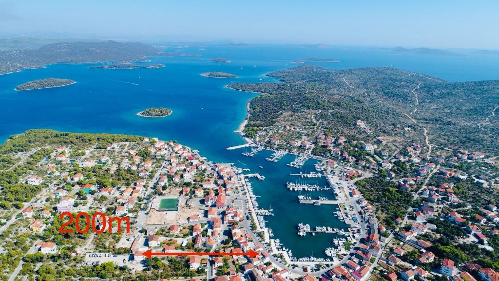 Opremljeno stanovanje v mirnem naselju Jezera, otok Murter. Lepo urejena plaža, oddaljena le 400 metrov. Objekt se nahaja 200 metrov od centra naselja. Objekt je samostojna hiša z dvema apartmajema v prvem nadstropju in ima veliko teraso z žarom. Na voljo je tudi vrt z zasajenimi rožami, jedilno mizo in vrtno garnituro za sprostitev. Nepremičnina ima kuhinjo, dnevno sobo (TV, raztegljiv kavč za eno osebo), kopalnico in spalnico. Kuhinja je opremljena z osnovnimi gospodinjskimi aparati (mikrovalovna pečica, kavni aparat, kuhalnik vode...). Privatno parkirišče zagotovljeno!