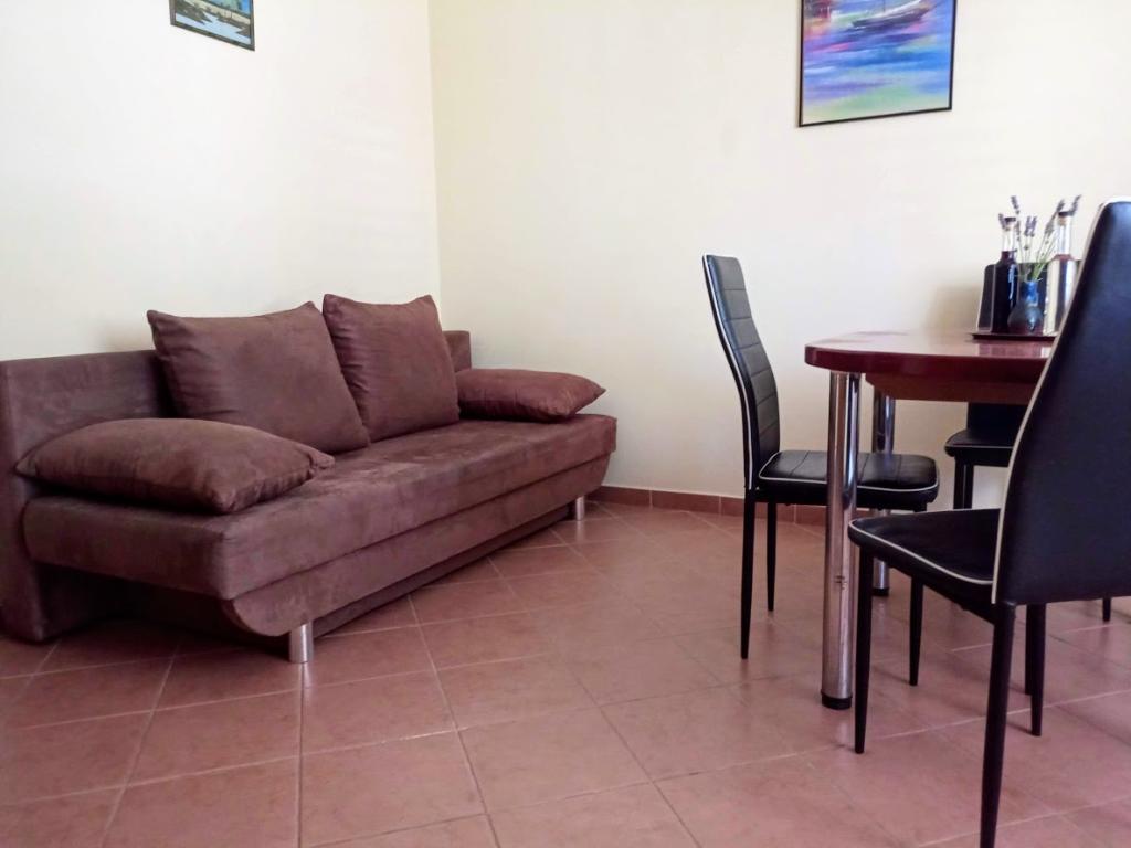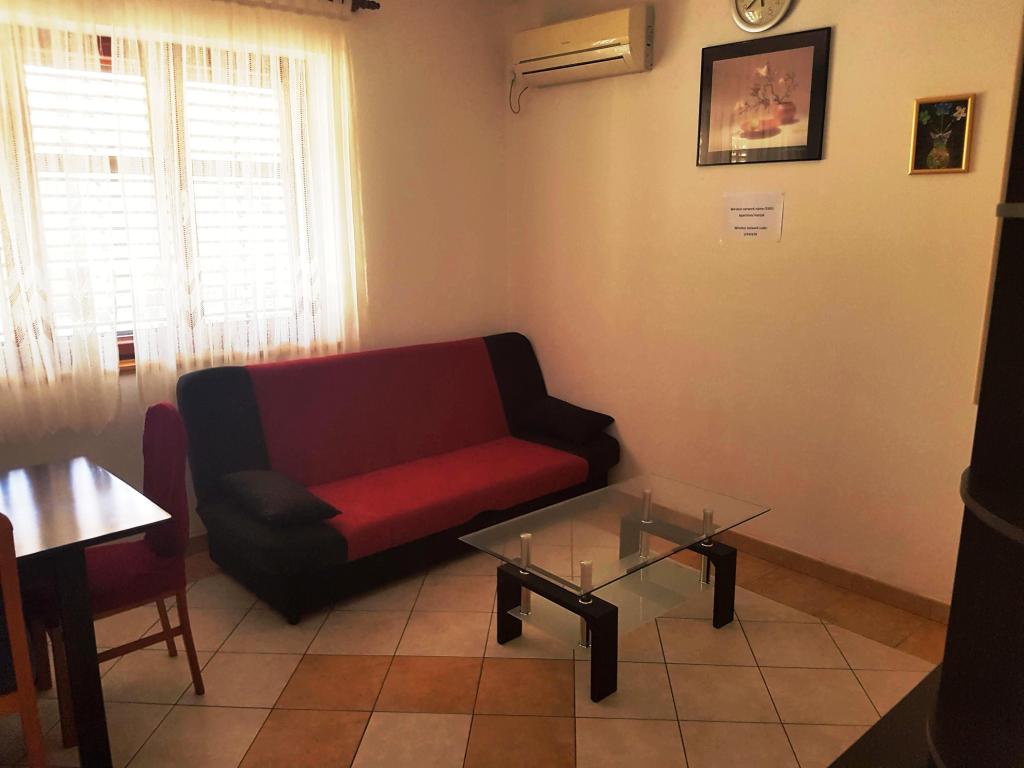 Popolnoma opremljeni apartmaji v mirnem predelu, ki se nahaja približno 5-10 minut hoje od centra mesta in lokalne plaže. Apartmaji se nahajajo v pritličju zasebne hiše, medtem ko lastniki živijo v 1. nadstropju. Apartmaji so izredno primerni za bivanje družin z majhnimi otroki, saj ima objekt veliko dvorišče in mini otroške prostore.