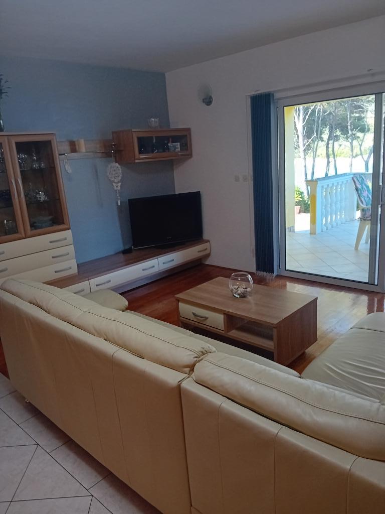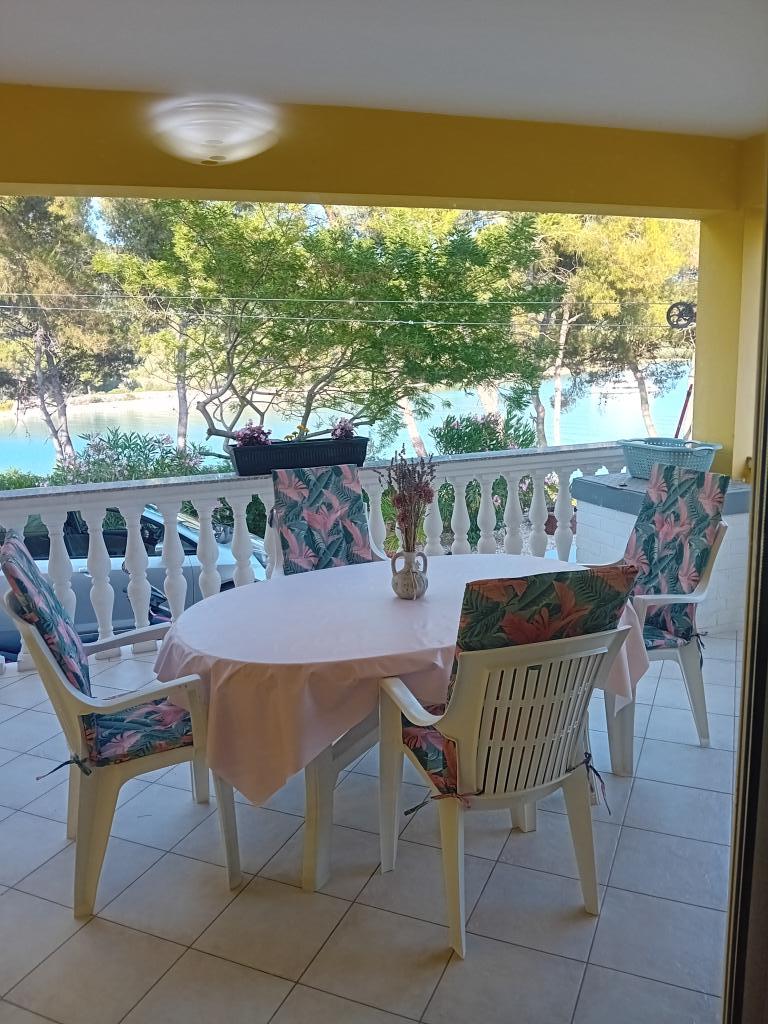 Apartma se nahaja v lepem zalivu Mala Lamljana, prva vrsta do morja, le 10 metrov od morja. Pred hišo je veliko dvorišče za parkiranje in velik balkon s pogledom na morje. Apartma se nahaja v prvem nadstropju z veliko teraso in pogledom na morje, sestavljen iz velike spalnice, velike kuhinje in velike dnevne sobe s kavčem, ki se raztegne v ležišče za dve osebi. Stanovanje je opremljeno z udobnim pohištvom in vsemi potrebnimi napravami, vključno s pralnim strojem in Wi-Fi. V bližini prenočišča, 2 minuti hoje, se nahaja bar na plaži Mala Luka, kjer lahko naročite hrano in pijačo ter neverjetna kavarna, kjer lahko uživate v čudovitem pogledu na morje in dobrem koktajlu. Če iščete tišino in mir borovega gozda in čistega morja, ste na pravem mestu.