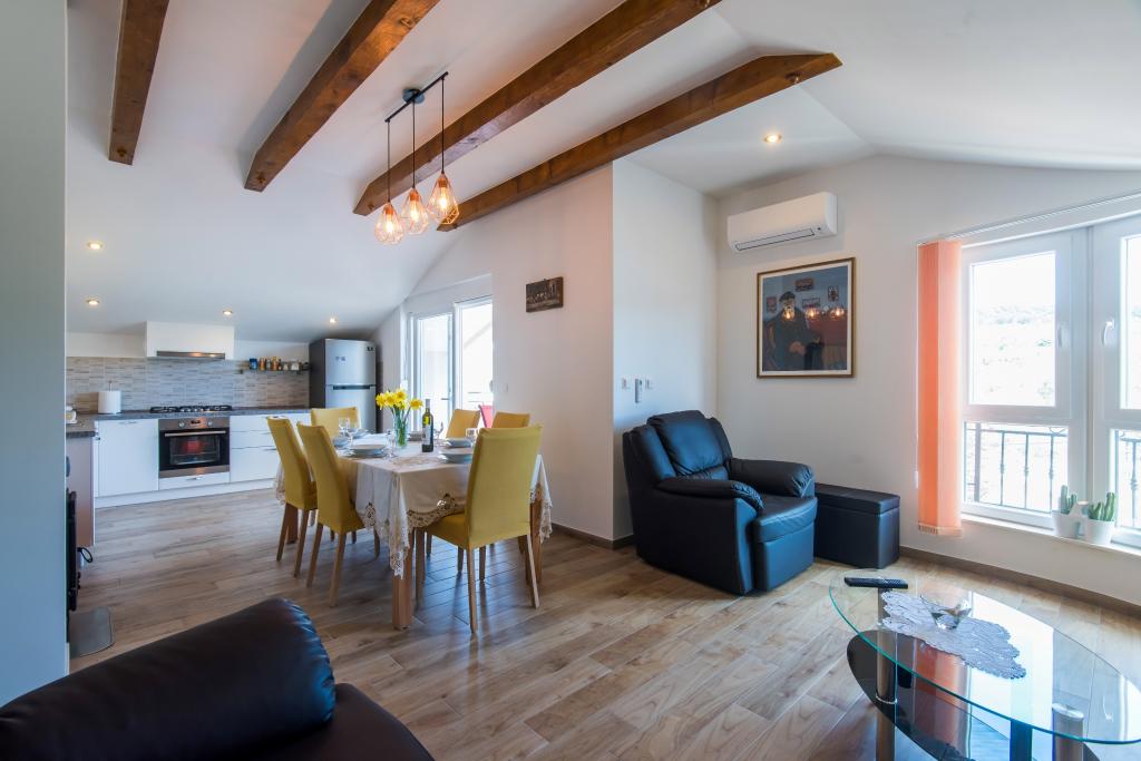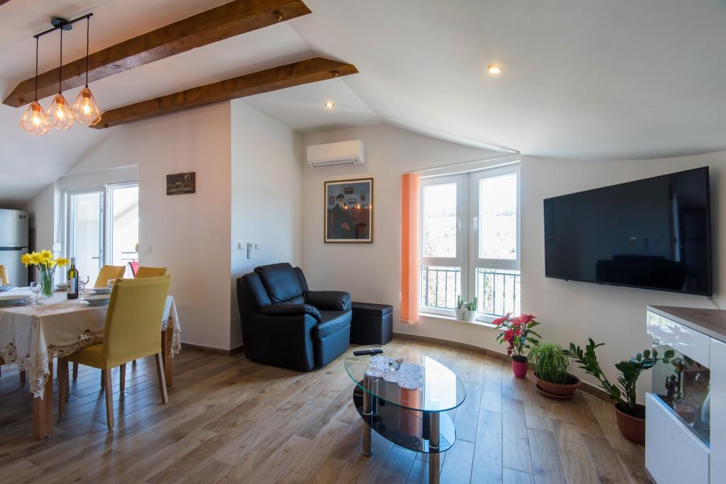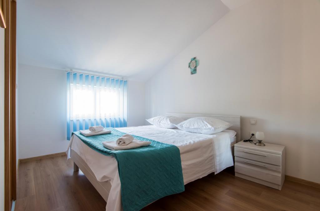 Apartmaji so v prvem nadstropju hiše, ki se nahaja v zalivu Lamjana v mirnem okolju ob morju, moderno in popolnoma opremljeno. Apartma 2 ima eno spalnico z zakonsko posteljo in velik raztegljiv kavč v kuhinjo z izhodom na balkon, kjer je pohištvo, kopalnica s tušem. Apartma 1 ima dve spalnici in dodatno ležišče v kuhinji, kopalnico s tušem, na balkonu pohištva. Središče mesta je približno 900 m. Na dvorišču je žar, ki je na voljo za naše goste.