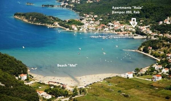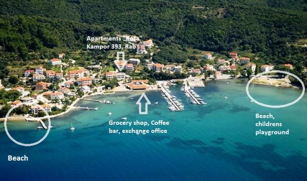 Apartmaji Roža se nahajajo v enem najlepših zalivov na otoku Rabu, v mirni vasici Kampor, le 30 metrov od morja. Ponujajo popoln kraj za sprostitev ob morju, mir in mediteransko vzdušje. Vsak apartma ima teraso s pogledom na morje, idealno za jutranjo kavo ali uživanje v sončnem zahodu. Nahajamo se v samem središču Kamporja, kjer so trgovine, kavarne in restavracije v neposredni bližini. Znana peščena plaža Mel, še posebej primerna za družine z otroki, je oddaljena približno 10 minut hoje, najbližje betonske in prodnate plaže pa so oddaljene le nekaj minut hoje. Dobrodošli v Apartmajih Roža - kraju, kjer se morje, mir in udobje popolnoma dopolnjujejo.