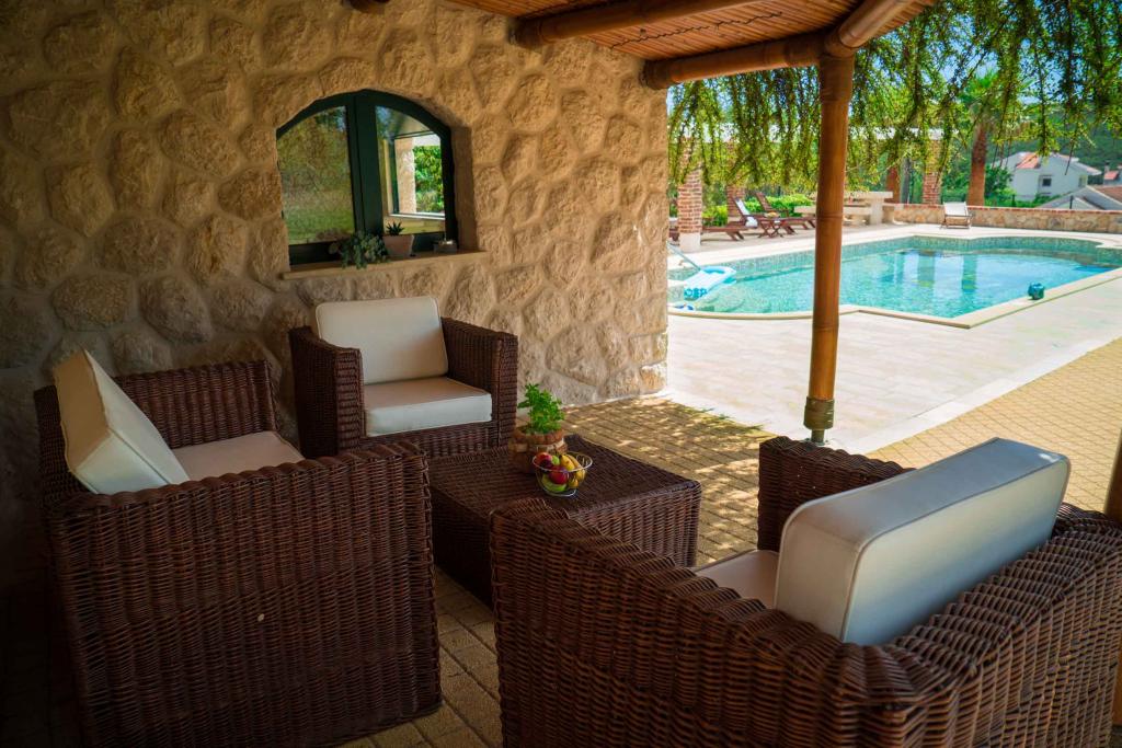 Turistična taksa je vključena v ceno.Na velikem območju nad hišo se razprostira čudovit vrt za daljše bivanje zvečer in popoldne. Na voljo so otroška igralnica, razkošna miza in razkošen in dobro opremljen žar, opremljena kuhinjska niša s straniščem ter več vrtnih miz in stolov. Moderno opremljen zunanji bazen, velikosti 9, 50 x 5, 20 metrov, globina 1, 50 metrov, opremljen s ležalniki in senčniki ter malico. Presenetil vas bo pogled na morje s čudovitega vrta in sončnega prostora okoli bazena. Možnost izletov z ladjico po otoku Rab, piknik, panoramski izleti, izleti z ladjico na sosednje otoke Pag, Lošinj in Krk. Za čolnarje nudimo privez za čolne, za naše najmlajše pa pikado, namizni nogomet in zračni hokej.