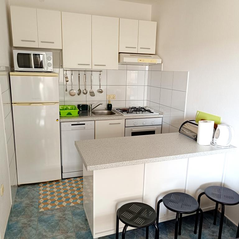 Res čudovit kraj, pa tudi predobri lastniki stanovanj. Pogled iz stanovanja je nekaj nepopisnega in res je prijetno uživati in vpijati modrino, ki vas obkroža. Apartma je dobro opremljen z vsem, kar potrebujete za udobno bivanje.