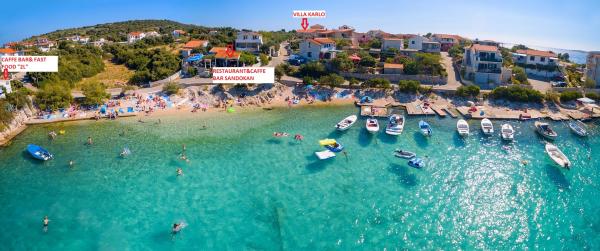 Apartmaji se nahajajo v mali vasici Kanica, zelo blizu kristalno čistega morja. Apartmaji so zelo čisti, prostorni in nudijo vse kar potrebuješ za bivanje. Domačina, ki stanujeta v spodnjem delu hiše sta zelo prijazna, ustrežljiva in nevsiljiva, res super. Na plaži sta dva lokala, katera ponujata hrano in pijačo, po normalnih cenah, kot so v Sloveniji. Ker v Kanici ni trgovine - oddaljena je dobra 2 kilometra, vsako jutro pripeljejo pred hišo kruh in pecivo, sadje in zelenjavo ter ribe. Vila Karlo ponuja 3 apartmaje, mi smo z prijatelji zavzeli vse tri in resnično je bilo super, tako da se naslednje leto z veseljem vračamo v ta mali raj.