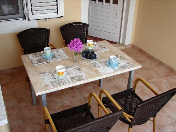 Gostitelji zelo prijazni in gostoljubni. Apartma čist, dobro opremljen. Terasa s pogledom na Kanico. Zelo blizu morja, lepa in čista plaža. Idealen kraj za sprostitev.