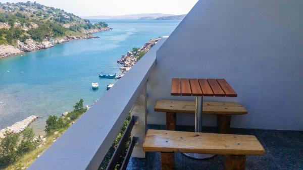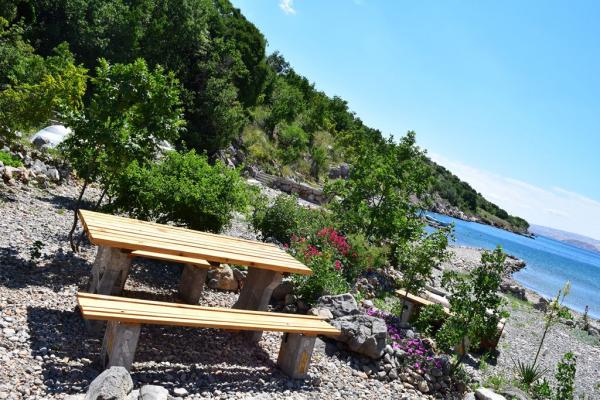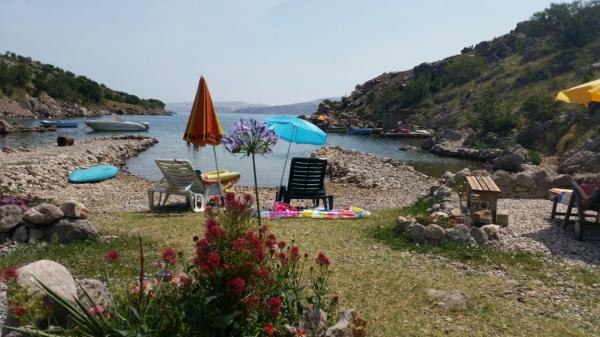 Stanovanje je bilo prostora za priročno na visoki ravni, clean. Zaliv je fantastičen, veliko rož in dreves. Vsakdo ima lahko ločen prostor. Obstajajo ležalniki, tuši, kajak. Spokojnost in mir. Lep pogled na otoku Pagu in drugod na obali lahko plavate.