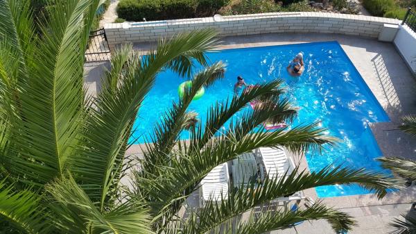 Odličen apartma, čudovit pogled, bazen, čudovita hostesa Darinka, popolnoma opremljena kuhinja. Bazen je vsak dan očiščen, zunanji tuš. Izposojevali smo stanovanje in 2 ia 4, čisto stanovanje, lepo, pogled diha ..... Iskreno priporočamo počitnice v apartmaju Palma ... Veseli nas.