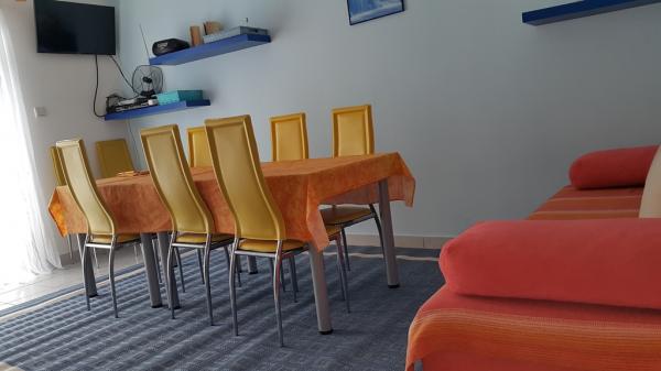 APARTMAJI 15 METROV OD MORJA, z bazenom pred apartmajem: Morje in plaža sta od apartmaja oddaljena 10 m - 15 m. MOŽNA JE REZERVACIJA CELE HIŠE za 4-5 družin ali posamezne apartmaje. PRAVILA IN OBDOBJA REZERVACIJ: Obdobja rezervacij so najmanj 7 NOČI ALI 14 NOČI, obdobja OD SOBOTE DO SOBOTE, v nekaterih primerih tudi druge dni, če je prost termin od enega obdobja do naslednjega, najmanj 7 noči! Če je v tem primeru med eno rezervacijo in naslednjo manj kot 7 noči, je možna rezervacija samo od sobote do sobote ali več. Goste sprejemamo v obdobju: junij, julij, avgust, september
