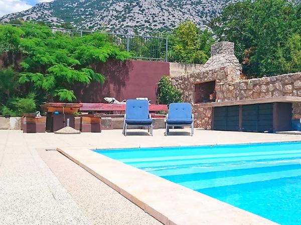 Ribarica 4 km od mesta Karlobag: Sodobna stanovanjska hiša. V Naravnem parku Velebit. Sončno mesto na pobočju, 90 m od morja, 90 m od plaže. Za skupno uporabo: bazen pravokoten (8 x 4 m, globina 140 cm, notranje stopnišče, zunanji tuš, terasa, vrtna garnitura, žar, otroško igrišče, parkirišče na parceli, trgovina 350 m, prodnata plaža 90 m.