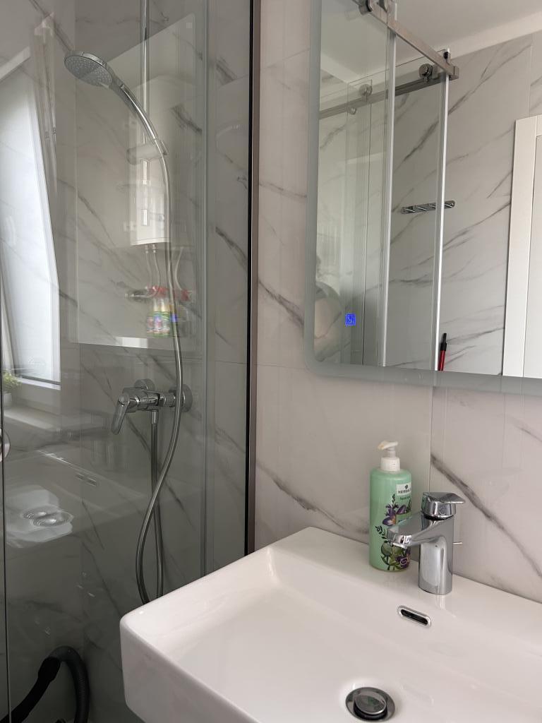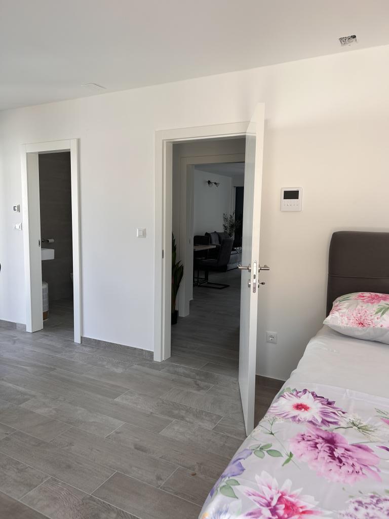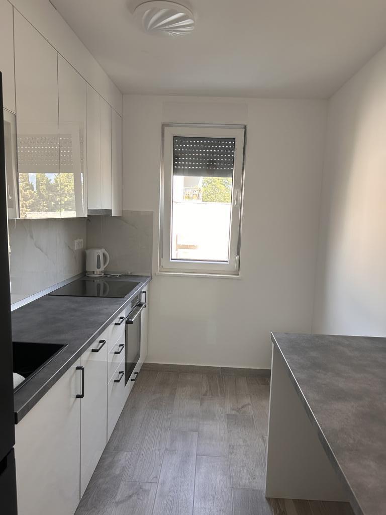 Novo stanovanje, ki se nahaja v stanovanjski stavbi, zato se oddaja le mirnim družinam, ki imajo raje mirno okolje. V pritličju stanovanjske stavbe se nahajata trgovina in kavarna, center mesta in plaža pa sta oddaljena približno 200 m. Apartma je namenjen za 6 oseb (4+2), uporablja se kot celota in se lahko razdeli na studio (2 osebi) in apartma za 2+2, saj ima apartma dve kuhinji in dve kopalnici dva para ali osebe, ki imajo radi svojo zasebnost. V terminu od 1.11-15.05 Cena po dogovoru.