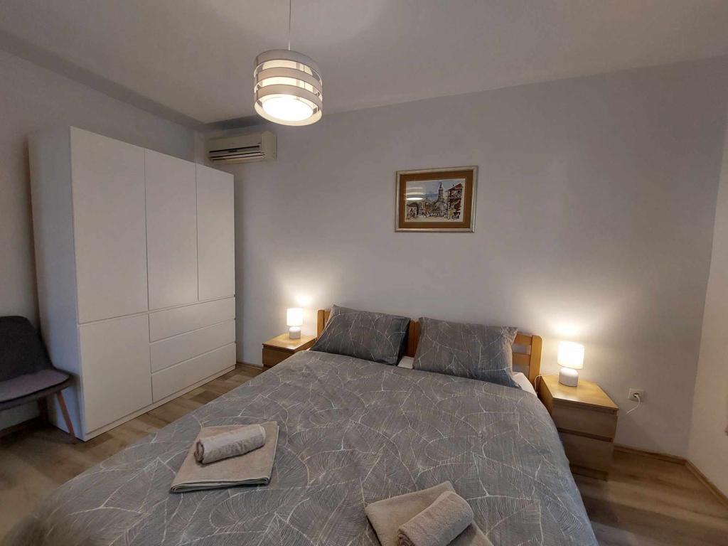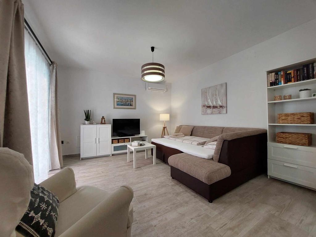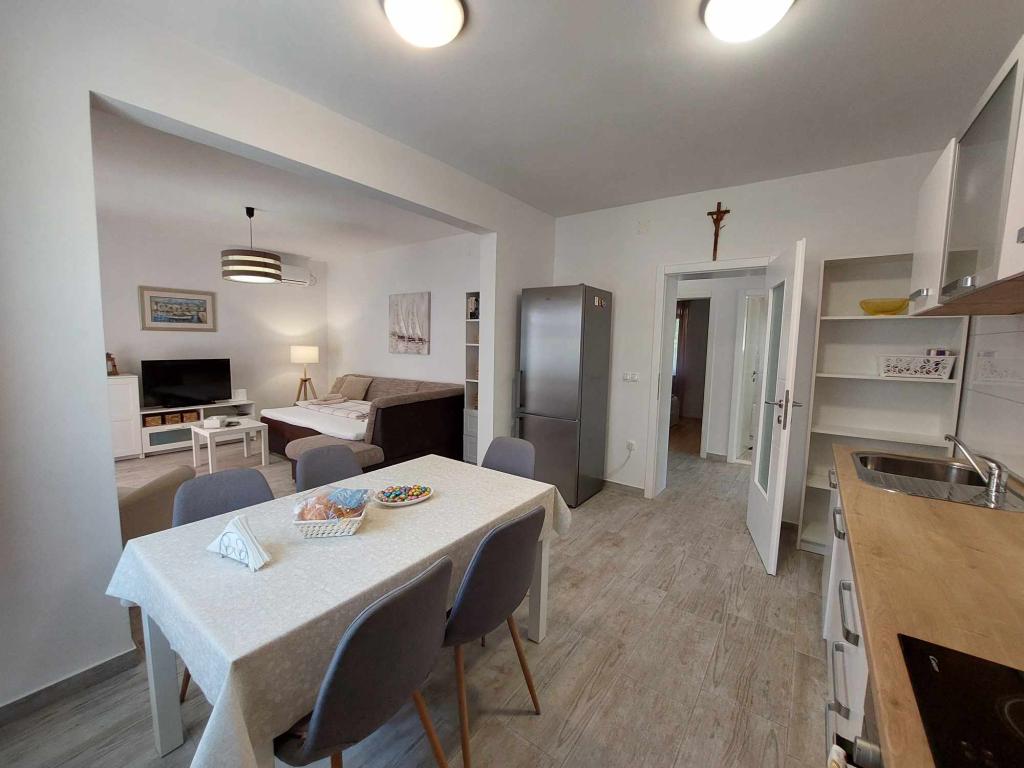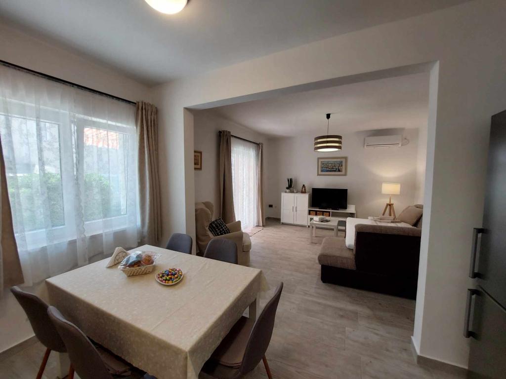 Apartma Igor se nahaja v pritličju družinske hiše v bližini plaže in centra Kaštel Lukšića. Apartma ima dve spalnici, kopalnico in prostorno dnevno sobo s popolnoma opremljeno kuhinjo. Iz dnevne sobe je izhod na teraso pred hišo. Gostom je na voljo manjši vrt in prenosni vrtni žar. Kaštel Lukšić se nahaja med Trogirjem in Splitom. in je dobro povezan z obema mestoma z avtobusnimi linijami. Od letališča Split je oddaljen le deset minut vožnje. Letališki prevoz je možen po predhodnem dogovoru. Veselimo se vašega obiska.