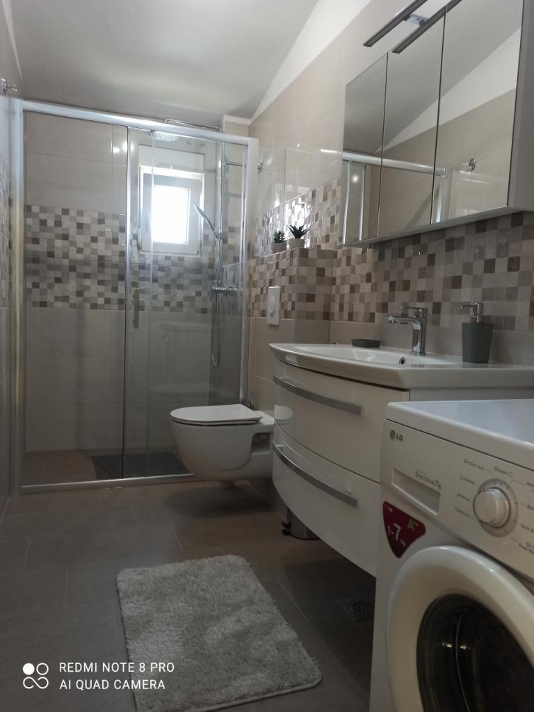 Nad to namestitvijo smo navdušeni! Pričakal nas je nov, lepo urejen, čist, prostoren apartma za 6 oseb v 2. nadstropju hiše, z odlično opremljeno kuhinjo in dvema kopalnicama. Hiša se nahaja v bližini plaže (150 m), trgovin, kavarn itd. Prišli smo s tremi avtomobili in vsem nam je uspelo parkirati poleg apartmaja in v bližini, kar je super. Vsekakor bi apartma priporočal vsem, ki želijo preživeti idealne počitnice, še posebej družinam z otroki, saj je lastnik pred hišo zgradil fenomenalno igrišče z gugalnicami, trampolinom in bazenom.