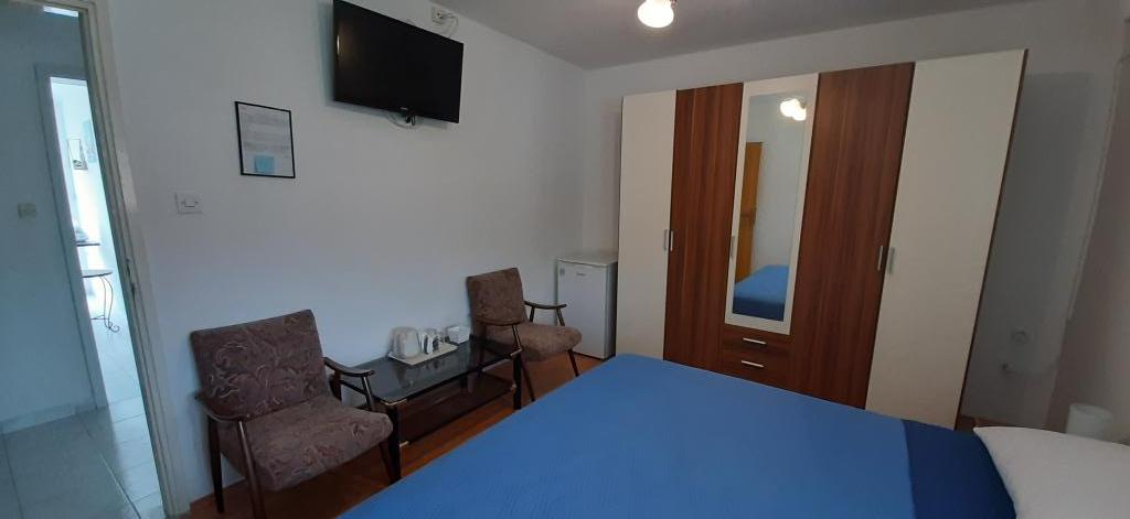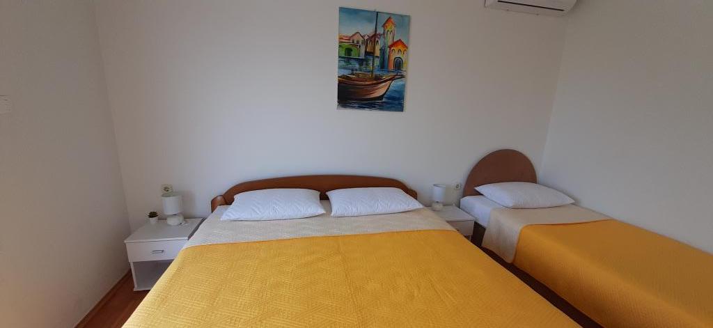 Naši apartmaji se nahajajo v mirnem okolju za uživanje na počitnicah. V bližini so restavracije, supermarket, plaže. Letališče je v bližini, in če prihajate z letalom, lahko organiziramo prihod gostov. Kaštela se nahajajo med Splitom (18 km) in Trogirjem (7 km), ki sta zaščiteni Unescovi mesti s slavnimi starinami. Lahko se odpravite na enodnevne izlete v nacionalni park Slapovi Krke, Međugorje, rafting na Cetini in organizirane izlete po otokih. Veselimo se vašega prihoda in prijetnega bivanja v naših apartmajih.