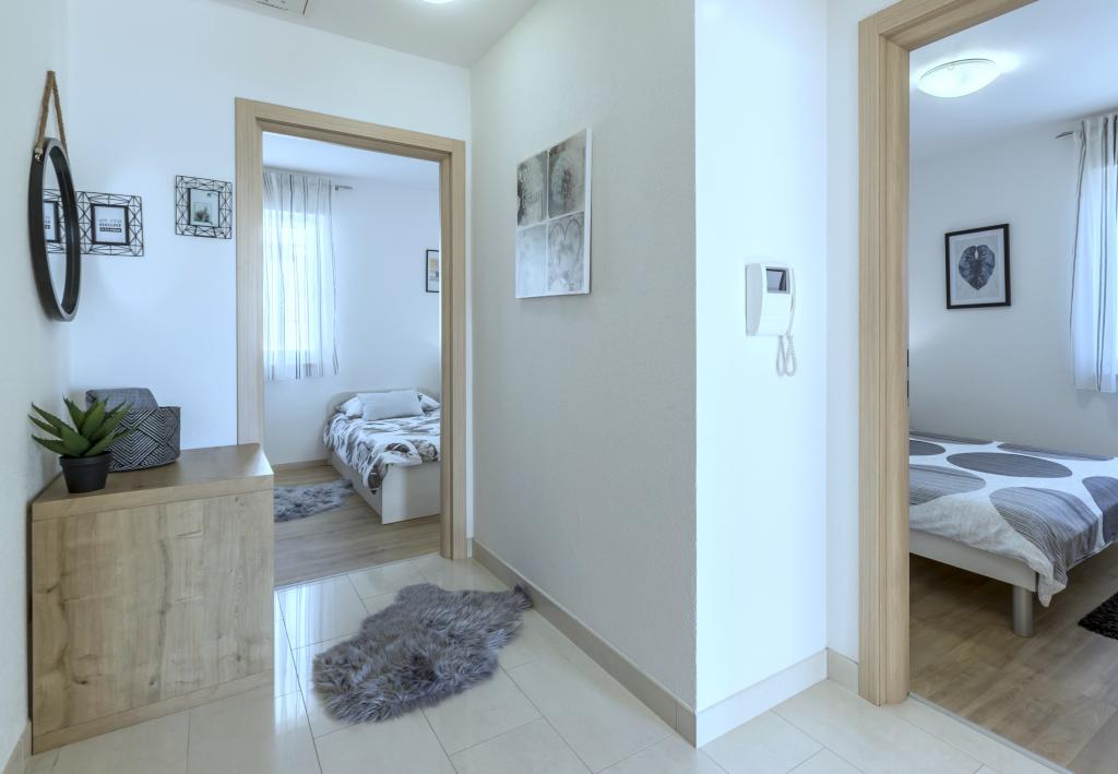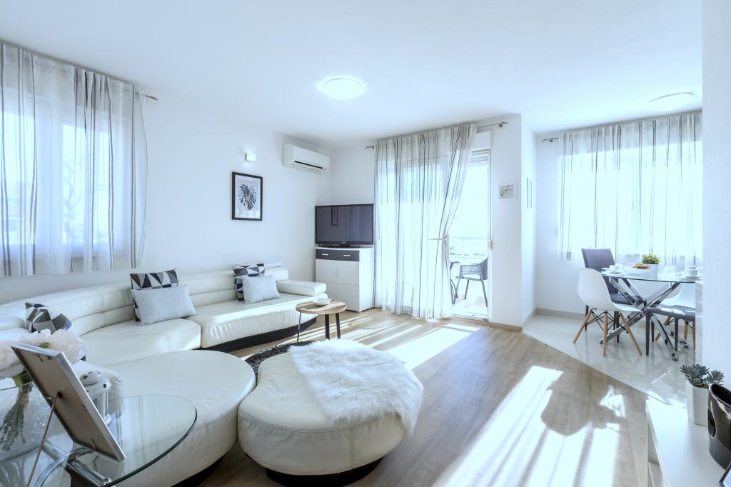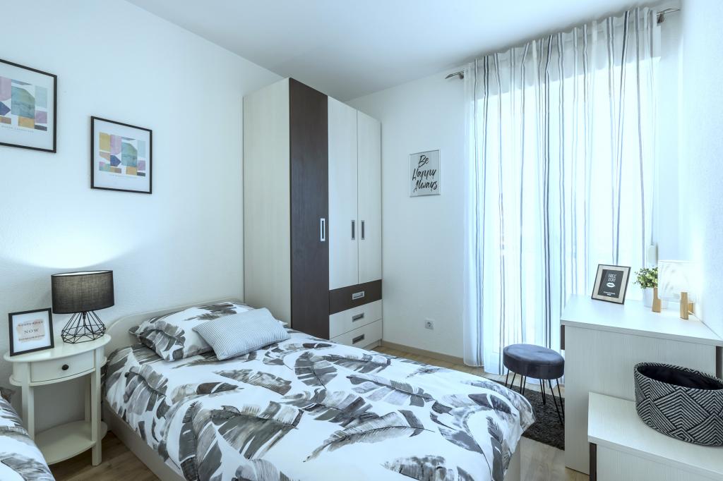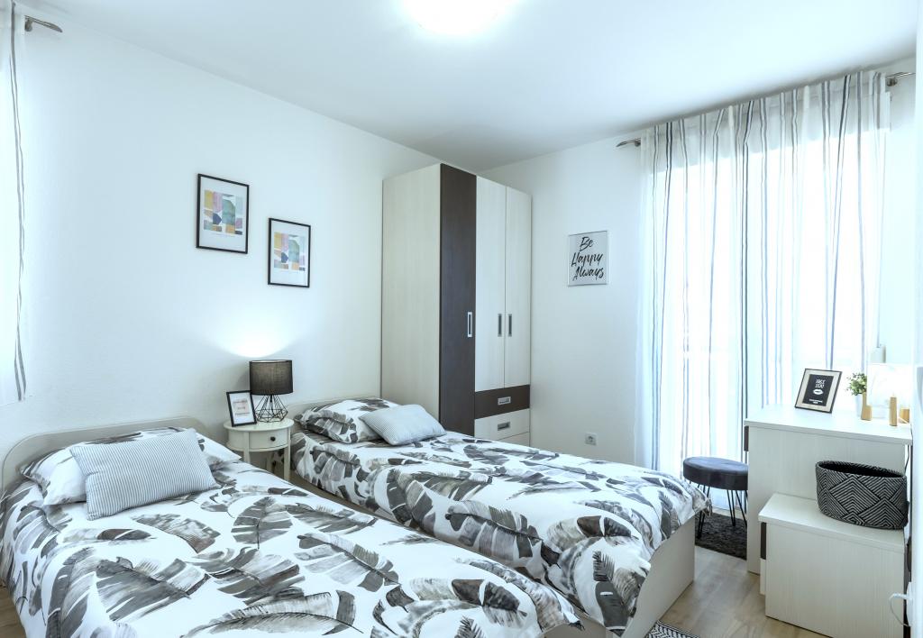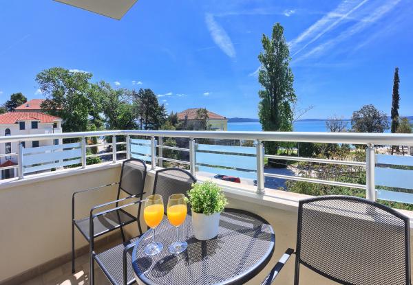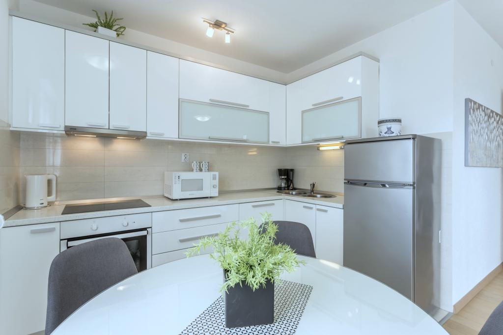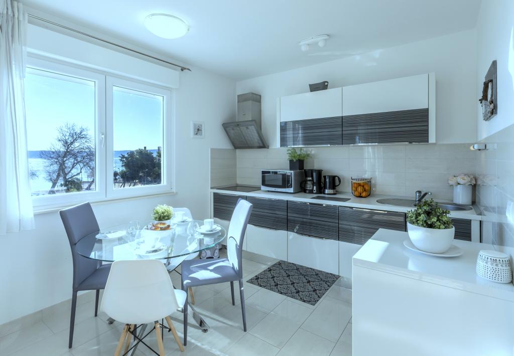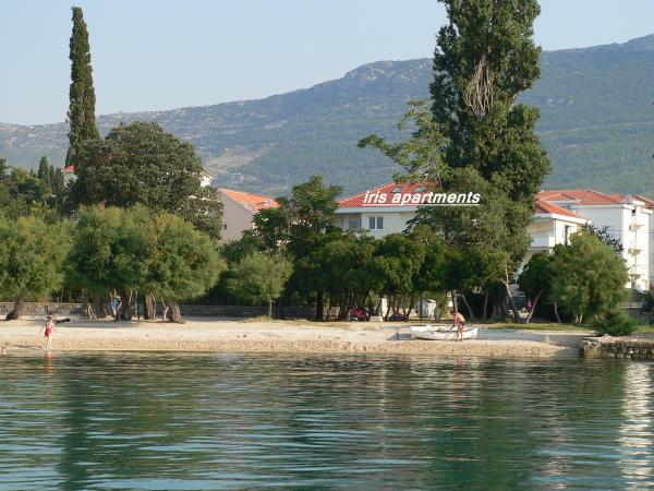 Iris Apartmaji so bili zgrajeni leta 2013th leto in vključuje tri sodobno opremljene apartmaje s klimo in elegantno notranjost, ki se nahaja v bližini glavne promenade in peščene plaže.Dječje igrišče se nahaja na oddaljenosti 100 metara.Prednost stanovanje se nahaja v bližini večjih mest Splita in Trogirja, ki so bogate s kulturno baštinom.Ljubitelji sprehodi lahko uživali v dolgih sprehodih ob obali, ki poteka skozi sedem gradov. Apartmaji imajo popolnoma opremljeno kuhinjo, dnevno sobo, dve spalnici in kopalnico s tušem. Vse enote vključujejo omaro, bivalni prostor in plazma TV.