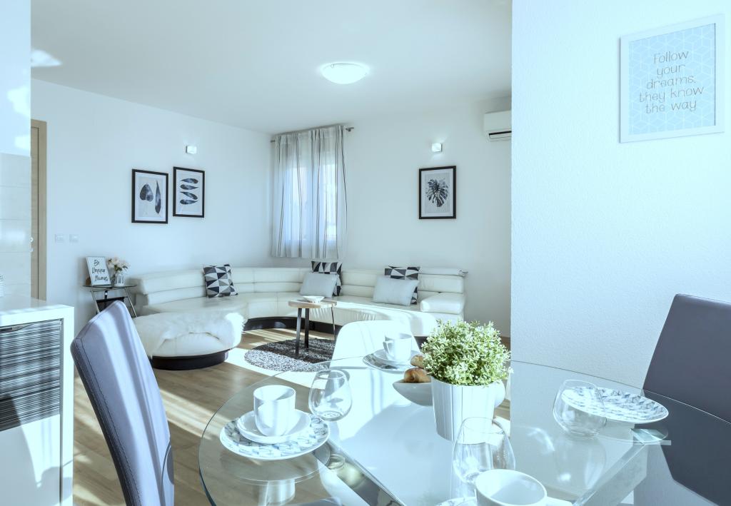 V tem odličnem apartmaju smo bili na začetku 9. septembra za 9 noči. Slike ne ležijo! Oprema, s pralnim strojem je bila super. Postelje so bile zelo udobne in čiste! Tako kot ostali apartmaji. Bližina morja je prav tako velika, greste ven in v 10 sekundah naravnost na vodo. Všeč nam je bilo veliko! Vrnili se bomo in priporočali.