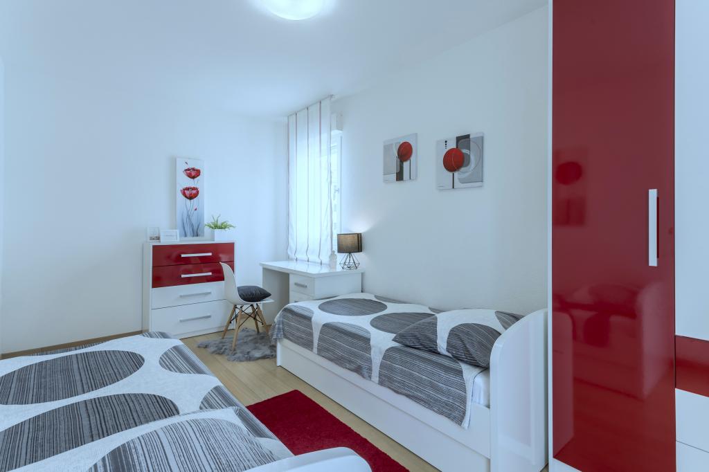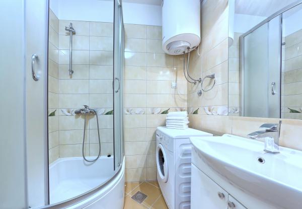 Lep apartma, niti minute do morja. Vse, kar potrebujete, je v bližini. Kavarne, trgovine, pošta, lekarna. Lastnik je zelo prijazen in vedno na voljo za vsa vprašanja. Apartma je zelo čist in prostoren. Apartma je imel vse, kar potrebujete. Pralni stroj in detergent, pomivalni stroj in tablete. Ko smo prispeli, sta bila v hladilniku voda in sok, kar je bilo za začetek zelo lepo, tako da nam ni bilo treba takoj v trgovino. Tudi stanovanje je bilo prijetno hladno. Ocena 10/10 in vsekakor priporočam.