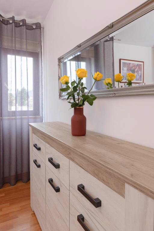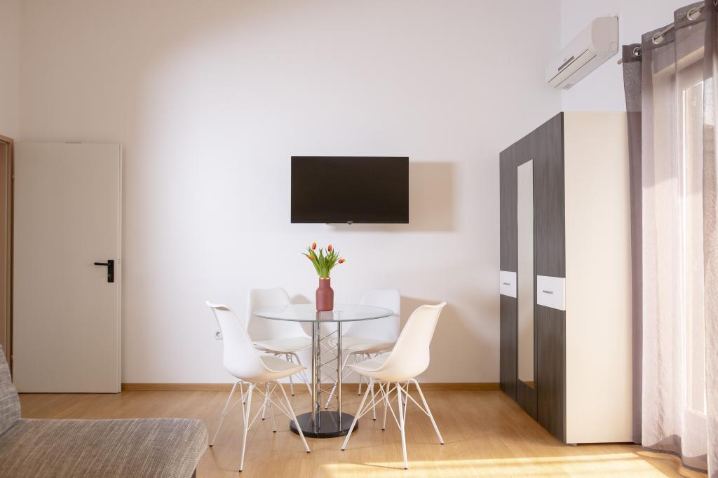 V tem apartmaju smo imeli čudovit dopust! Gostitelja, gospod Ewa in gospod Ivo, sta izjemno prijazna, topla in nevsiljiva – vedno na voljo za pomoč. Apartma je bil brezhibno čist in urejen, opremljen z vsem, kar bi lahko potrebovali za udobno bivanje. Največji plus je zagotovo balkon s pogledom na morje – popoln kraj za jutranjo kavo ali večerno sprostitev. Lokacija je fantastična: vse je dobesedno na dosegu roke! Plaža in trgovine so oddaljene le nekaj minut hoje, zaradi bližine vsega pa avtomobila med celotnim bivanjem sploh nismo uporabljali. Tik pred apartmajem so avtobusna postajališča z rednimi linijami do Trogirja in Splita, kar je zelo praktično za izlete brez skrbi glede parkiranja. Zelo priporočljivo vsem, ki iščejo mir, udobje in odlično lokacijo za idealne poletne počitnice. Zagotovo se bomo vrnili!