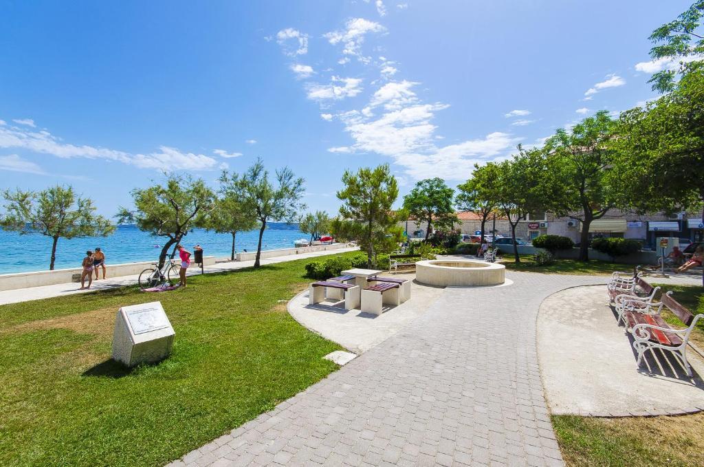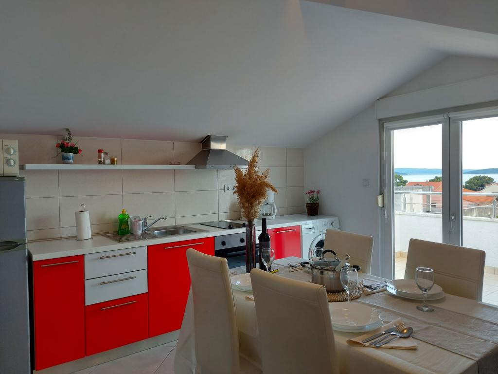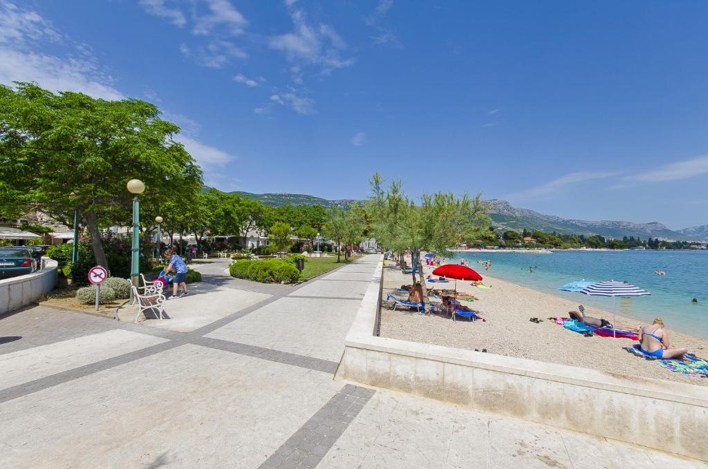 V hiši sta dva apartmaja, oceniti apt. 1, ki je kot nalašč. Ima dve terase, eno z dnevno sobo s pogledom na morje. Stanovanje je moderno in čisto. Klimatska naprava je ne samo v kuhinji, če pa pustite vrata v sobo odprto, tako da je dovolj. Prosti Wifi. Hiša stoji na vaško cesto, kjer je prometa podnevi in ponoči, vendar pa naše stanovanje je usmerjen na drugo stran, tako da ni nič, da nas moti. Nedaleč stran je trgovina. Super je tudi bazen z ležalniki in tuš. Morja je okoli 200 m, ampak smo šli malo dlje, je bil boljši vstop v vodo. Bližje plaža so v morju večjih kamnov. Sicer pa oba prodnate plaže. V bližini je več restavracij. Ob plaži sprehod do zgodovinskem delu mesta, nekaj za romantike. Obstajajo tudi trgovine, restavracije, izposoja koles. Na potovanju je kratek sprehod do Splita in Trogir. Blizu Split letališče, tako da letala letela nad nami, ampak se mi niti ne posluša. G. lastnik Zoran je zelo prijazna in koristna. Pustite nam zelo veliko. Mislim, da je primerna. 1 zasluži 4 zvezdice. Všeč mi je, da jo priporočam vsem :-)