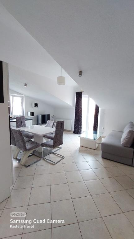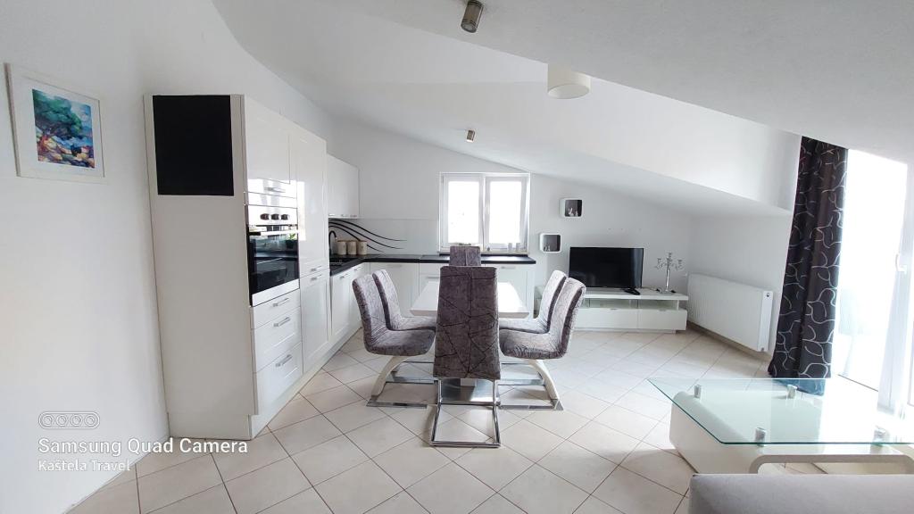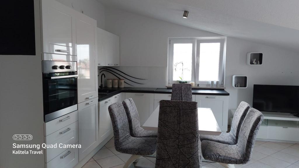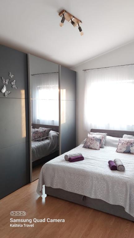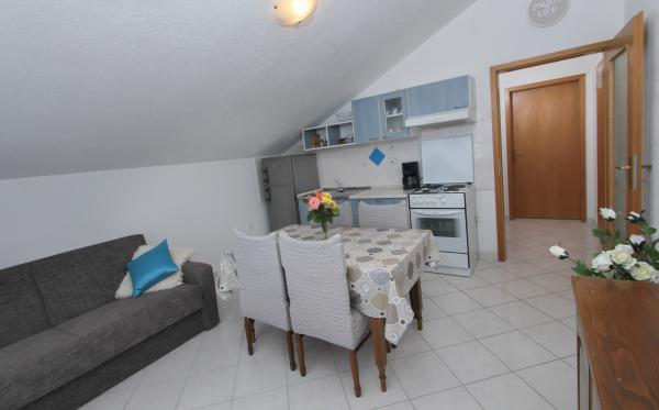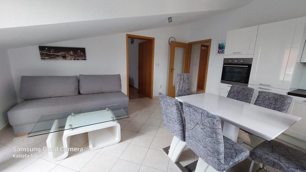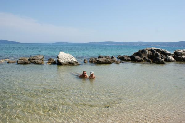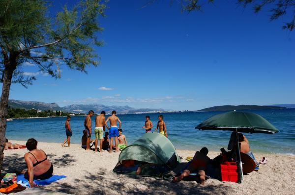 Popolnoma opremljeni apartmaji v bližini mesta UNESCO Trogir in Split. Samo 50 metrov od peščene plaže, primerne za majhne otroke. Hiša ima skupaj 3 apartmaji za največ 11 ljudi. Gostom je na voljo brezplačno parkirišče, Wi-Fi in zunanji žar.