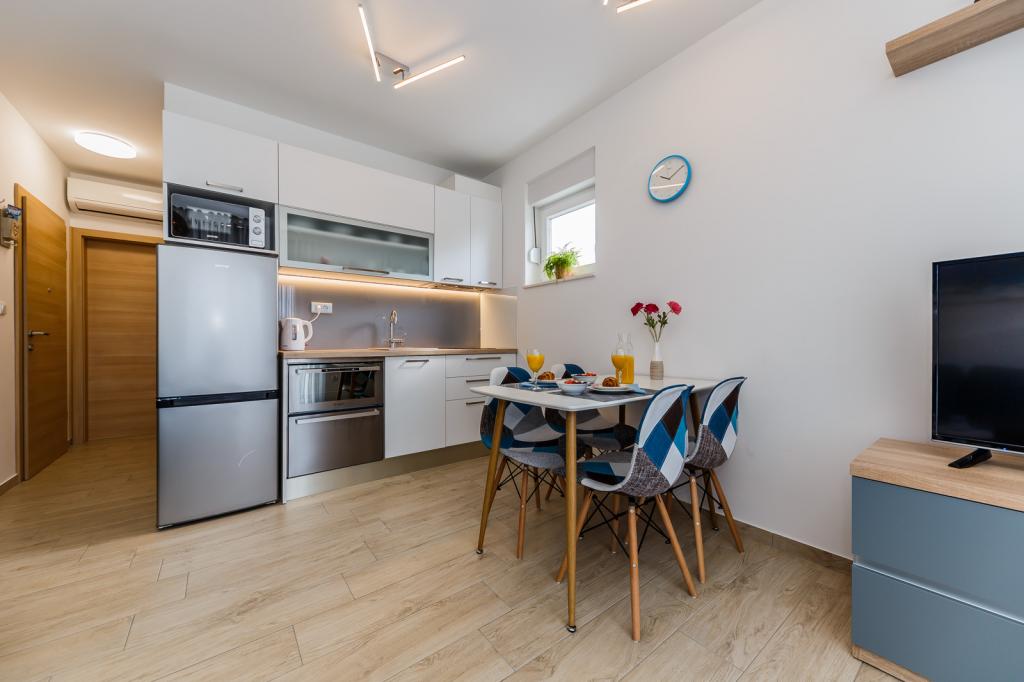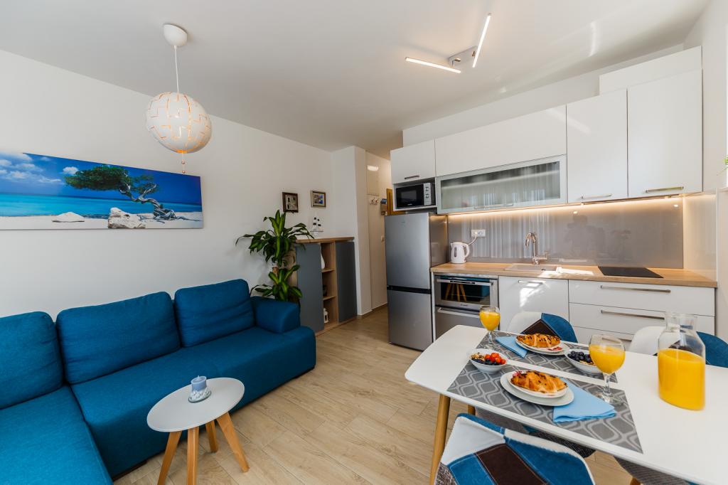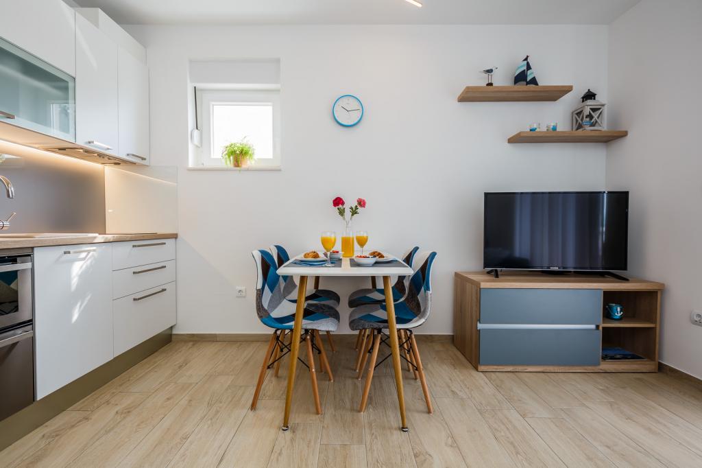 Že 26 let vsako leto dopustujemo na Hrvaškem, a oprema tega apartmaja (pralni stroj, pomivalni stroj, pečica, sušilnik za lase, aparat za sendviče, mikser) in seveda vse malenkosti, alu folija, kuhinjske krpe in še kaj presenetilo me je, da so nas čakale brisače, v vseh količinah, in hladna pijača. Čudovito čisto stanovanje in zelo ustrežljiva ter poštena gostiteljica, internet pa je deloval brezhibno. Bližina vode je primerna, pogled z obale je čudovit, voda čista in topla. Seveda je stanovanje opremljeno z zelo modernim in okusnim pohištvom. Hvala Damír